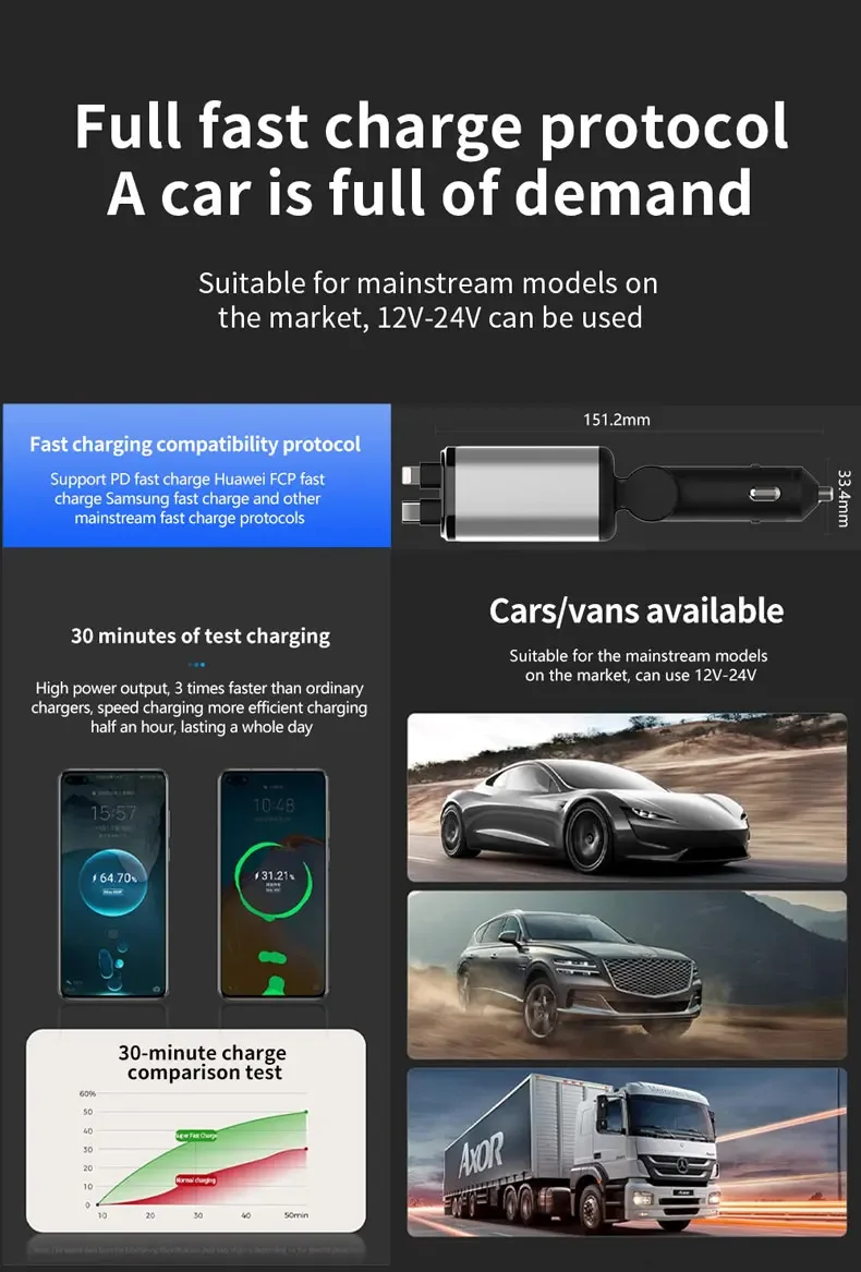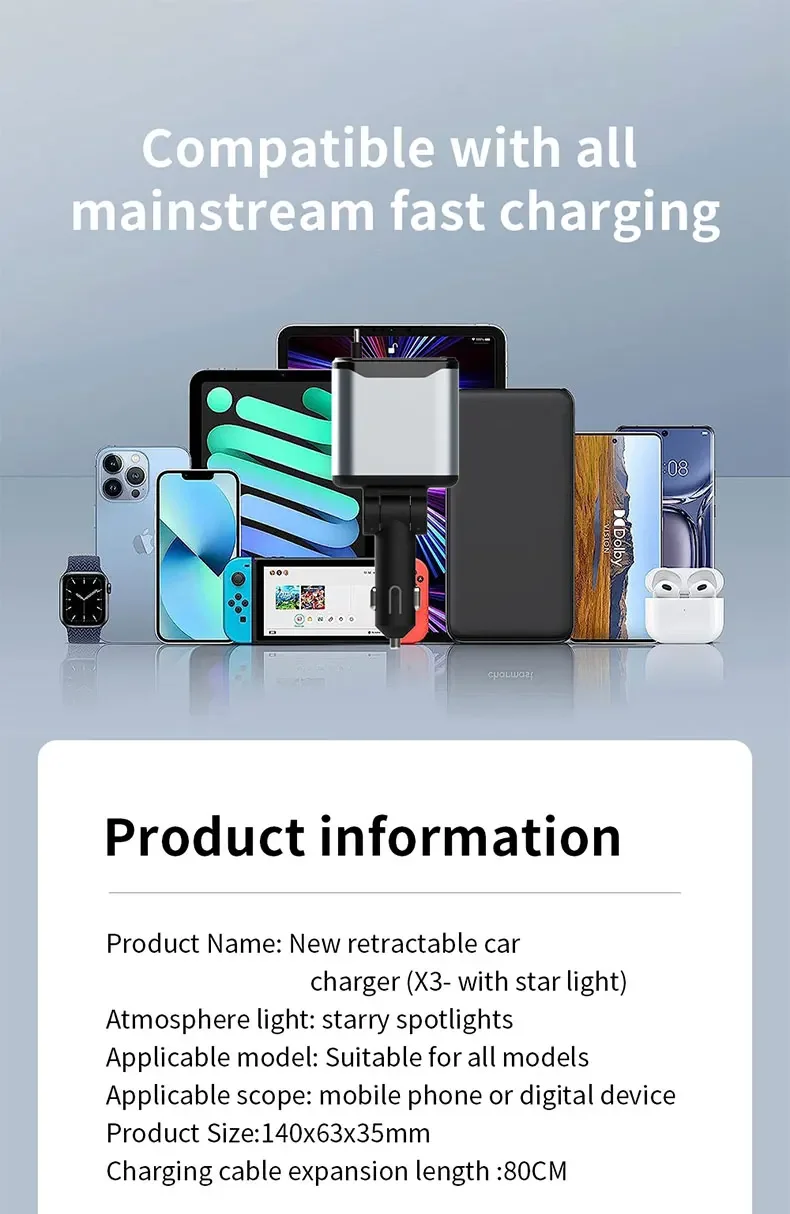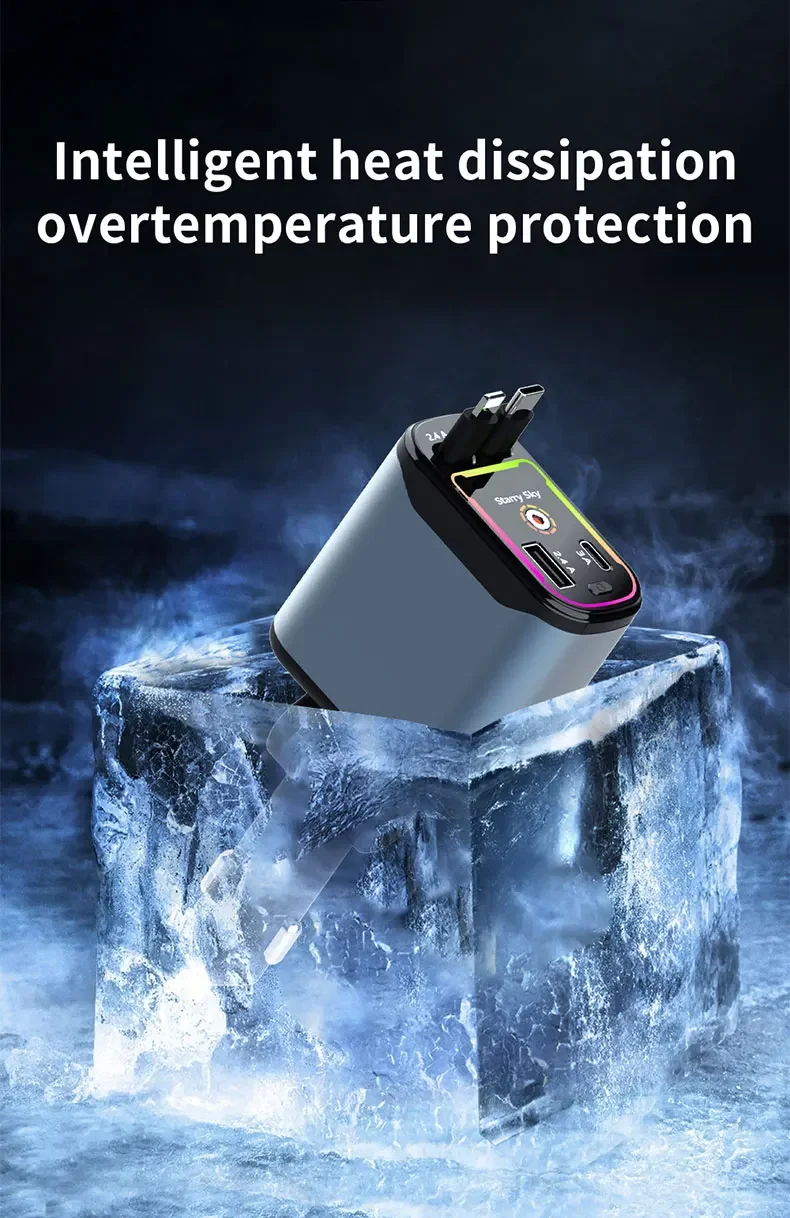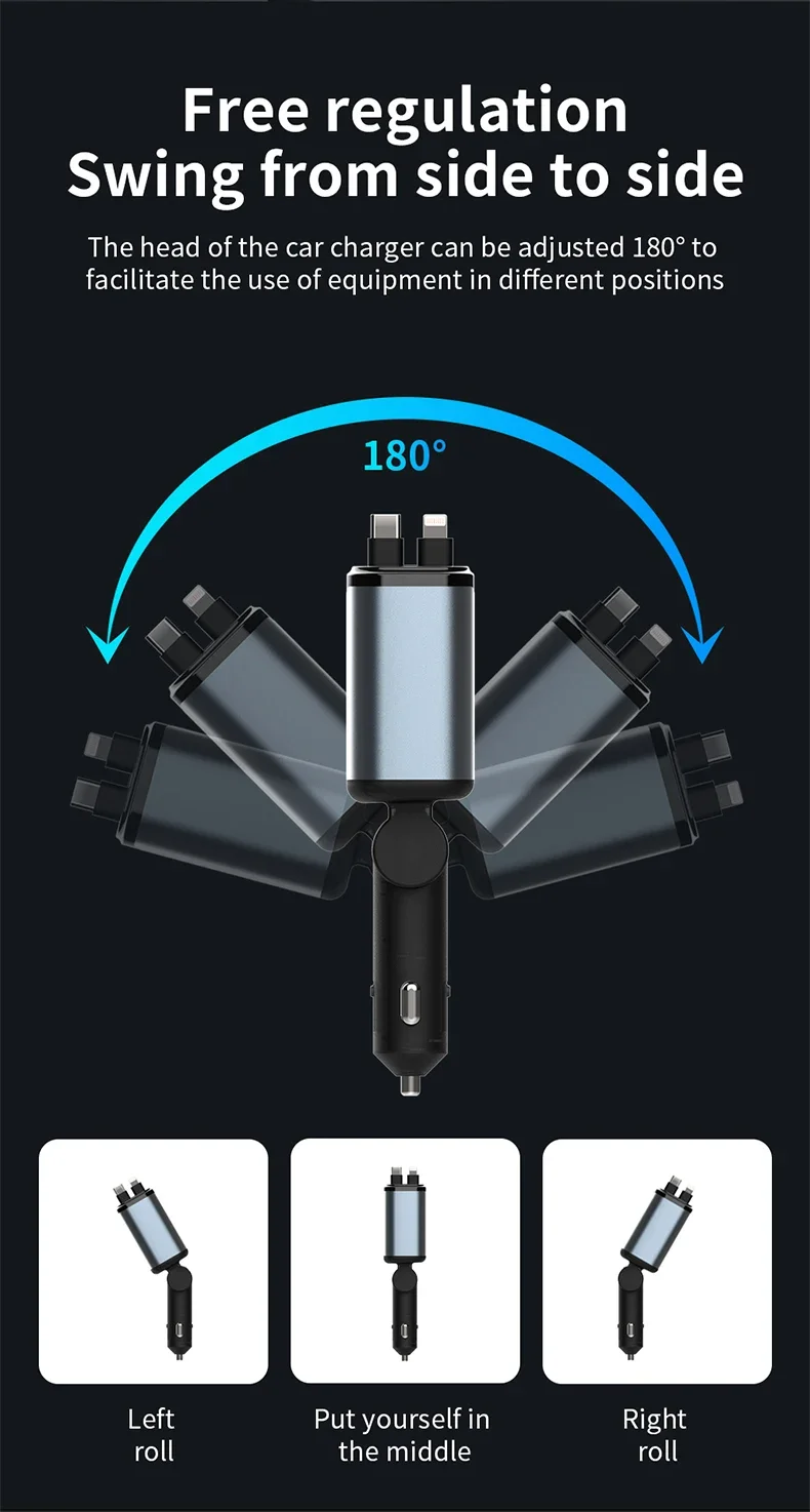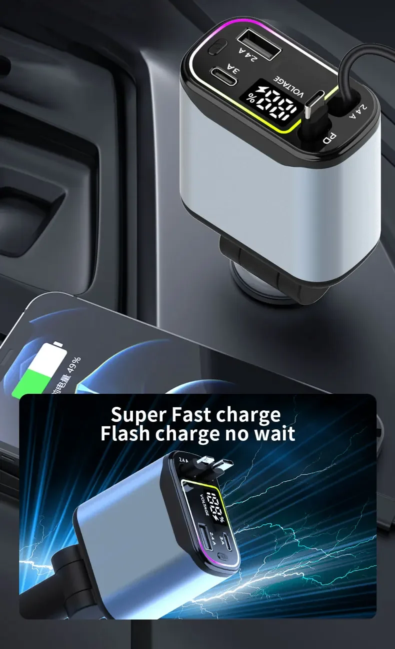 El diseño del cable retráctil garantiza un uso sin enredos, lo que lo hace conveniente para una carga rápida mientras viaja.