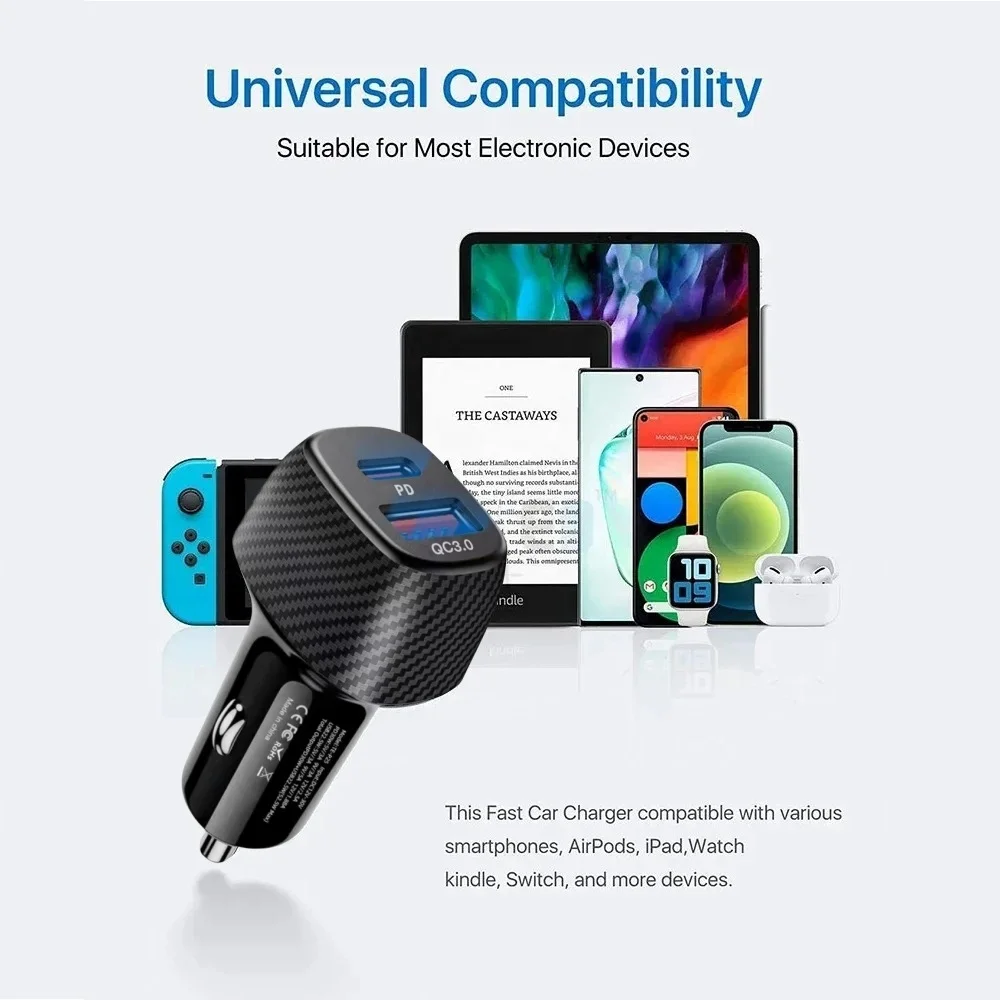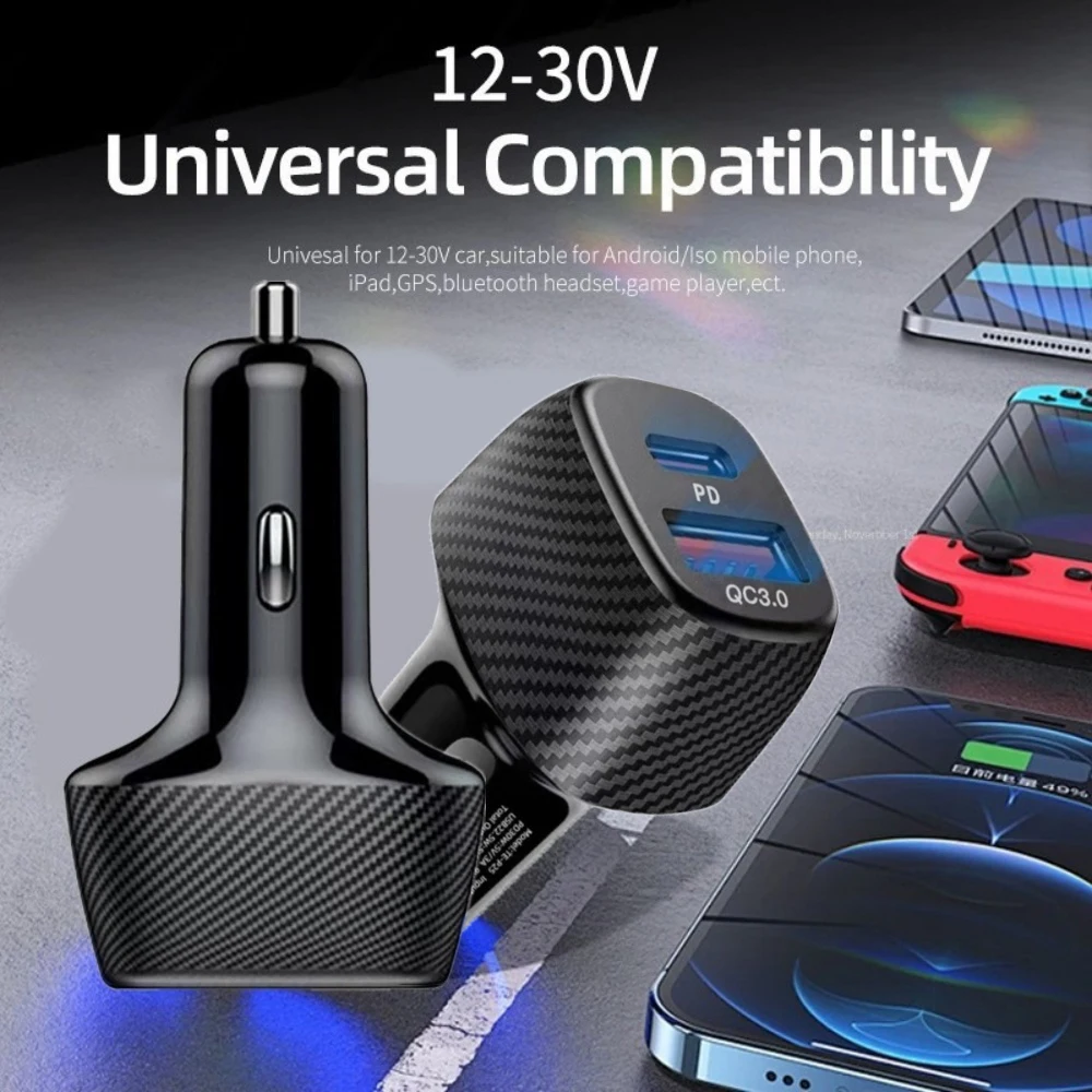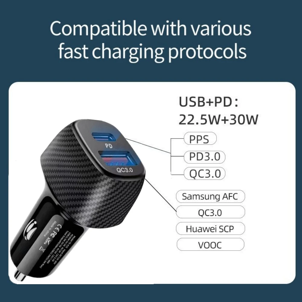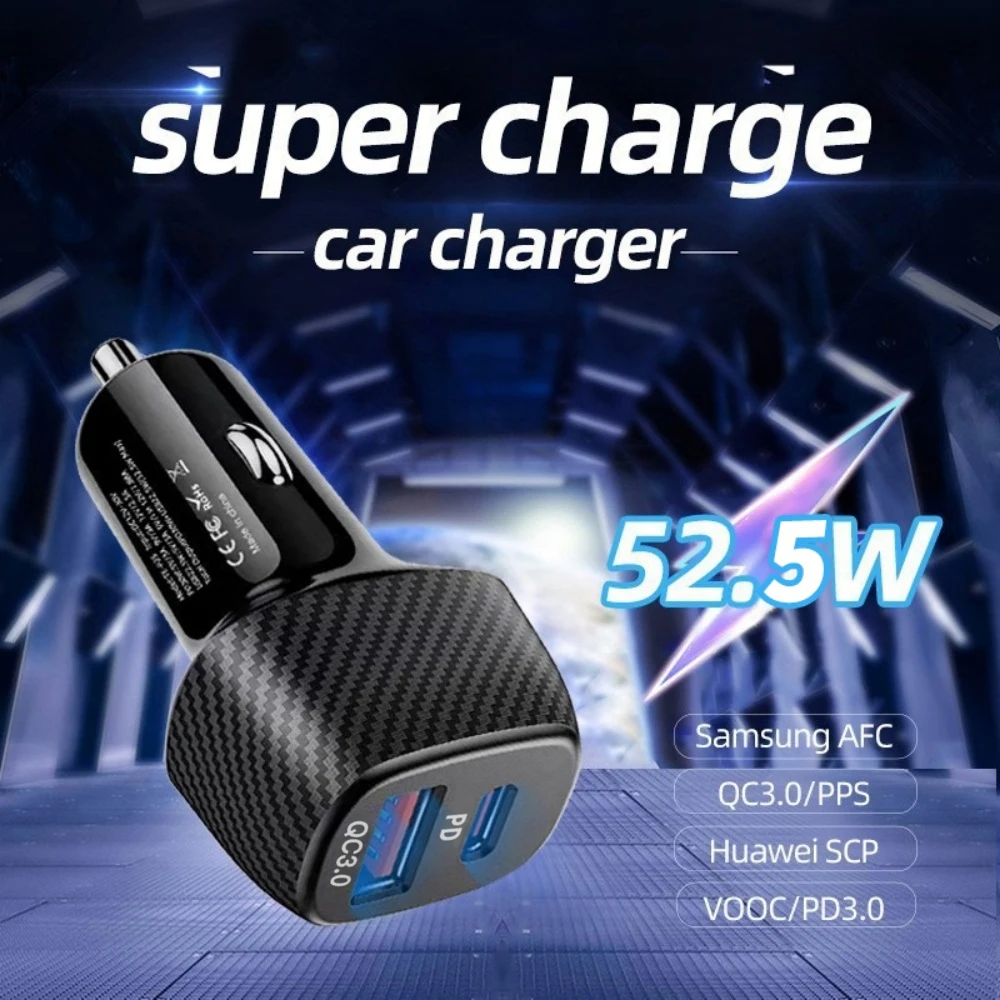 Comprar Cargador de coche de 52,5 W USB tipo C adaptador de teléfono de coche de carga rápida para iPhone 16 15 14 Xiaomi Huawei Samsung S21 S22 carga rápida 3,0