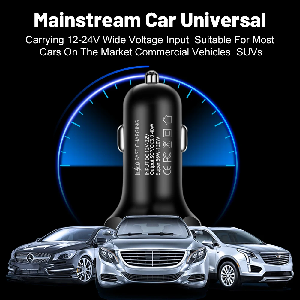 Cargador de coche de 66W QC 3,0, carga rápida USB, cargador de teléfono de 4 puertos, cargador adaptador de encendedor de cigarrillos de carga para coche para IPhone