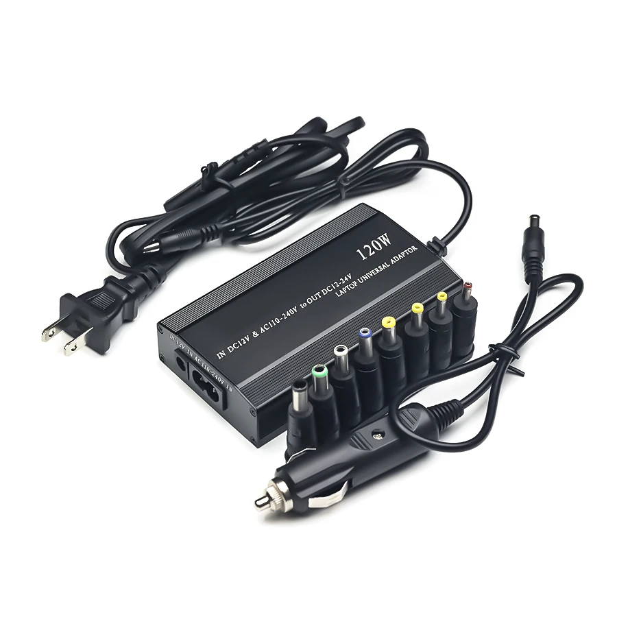Cargador de coche ajustable 120W 220v 110v a 12V 15V 16V 18V 19V 20V 22V 24V Adaptador de CA CC universal Fuente de alimentación USB Notebook