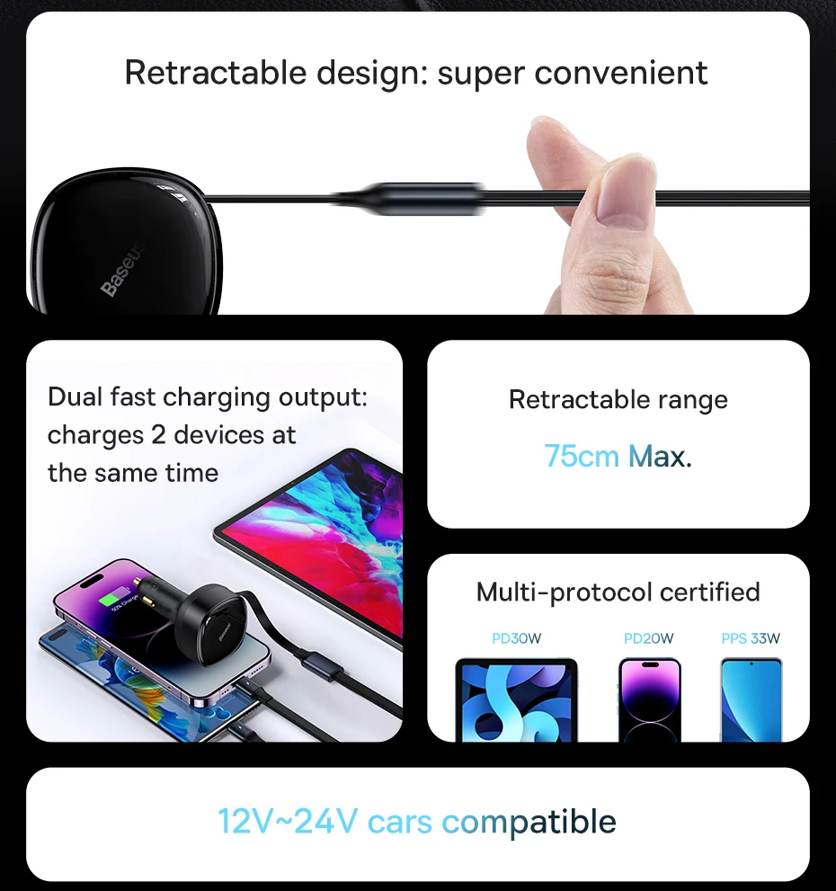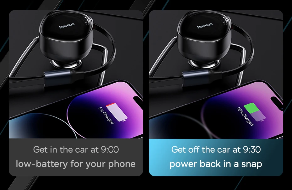 Baseus Enjoyment Retractable 2-in-1 Car Charger 30W