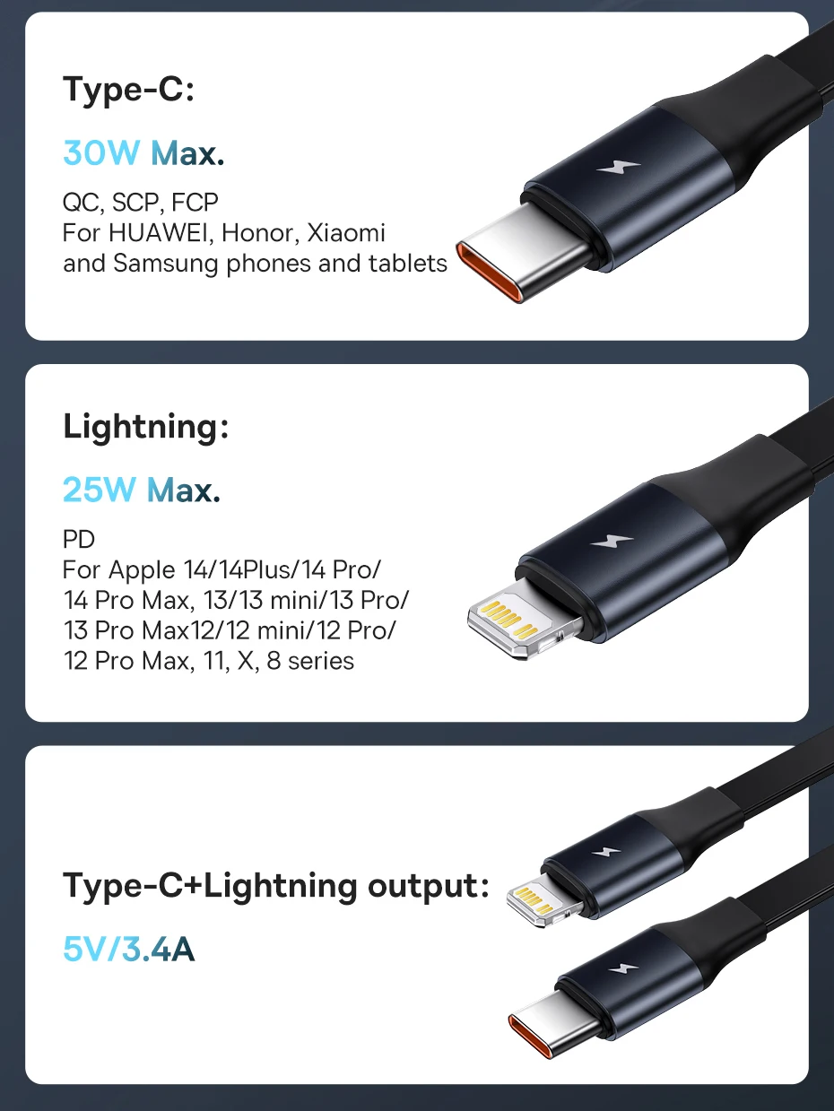 ✅Type-C + Apple output: 5V/3.4A