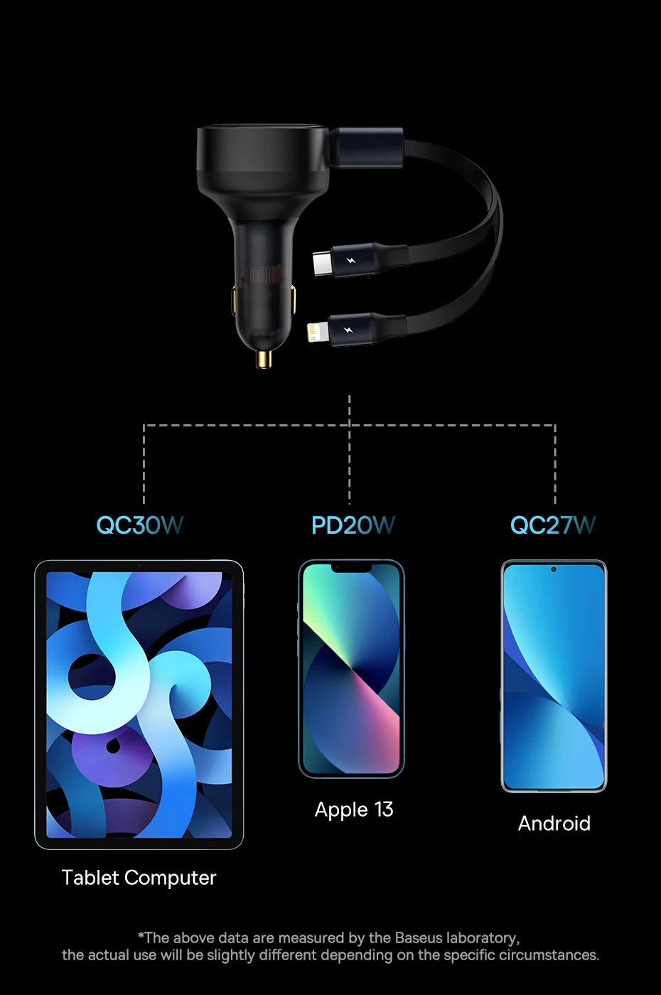 Up to 30W power output, compatible with various devices for fast charging.