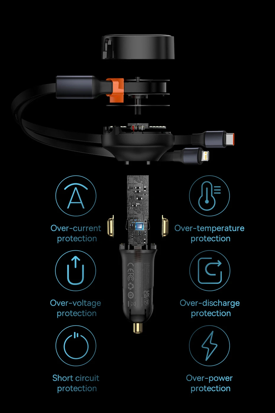 Built-in Dual Retractable Fast Charging Cables