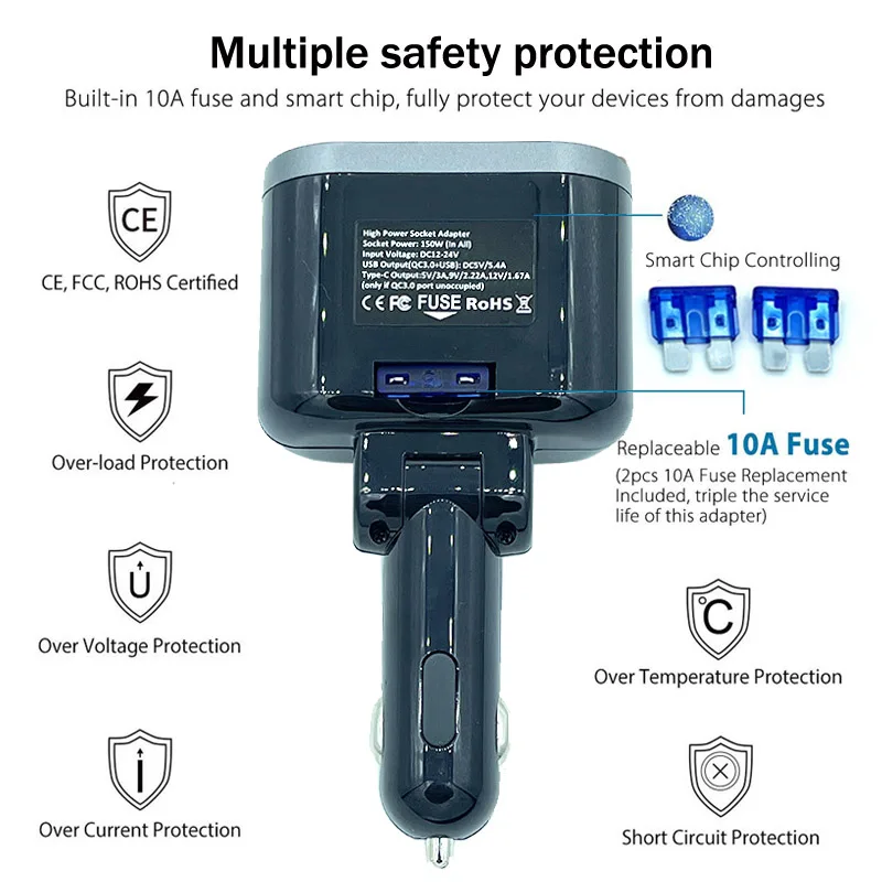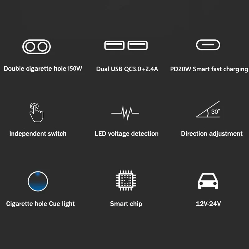 Comprar Cargador de coche divisor de enchufe de encendedor de cigarrillos QC3.0, cargador Dual USB de carga rápida tipo C PD20W, adaptador de corriente de interruptor independiente