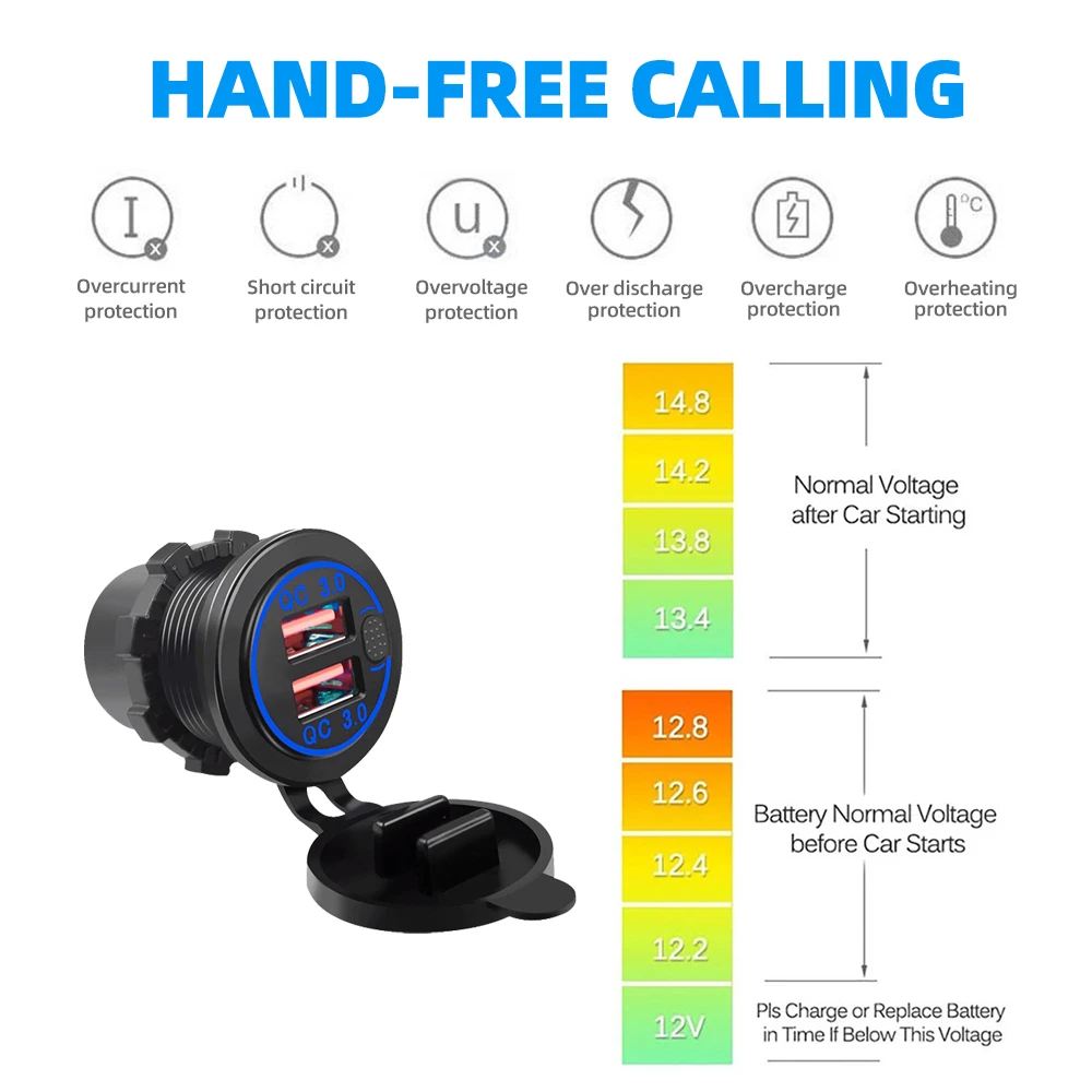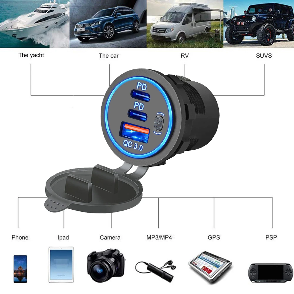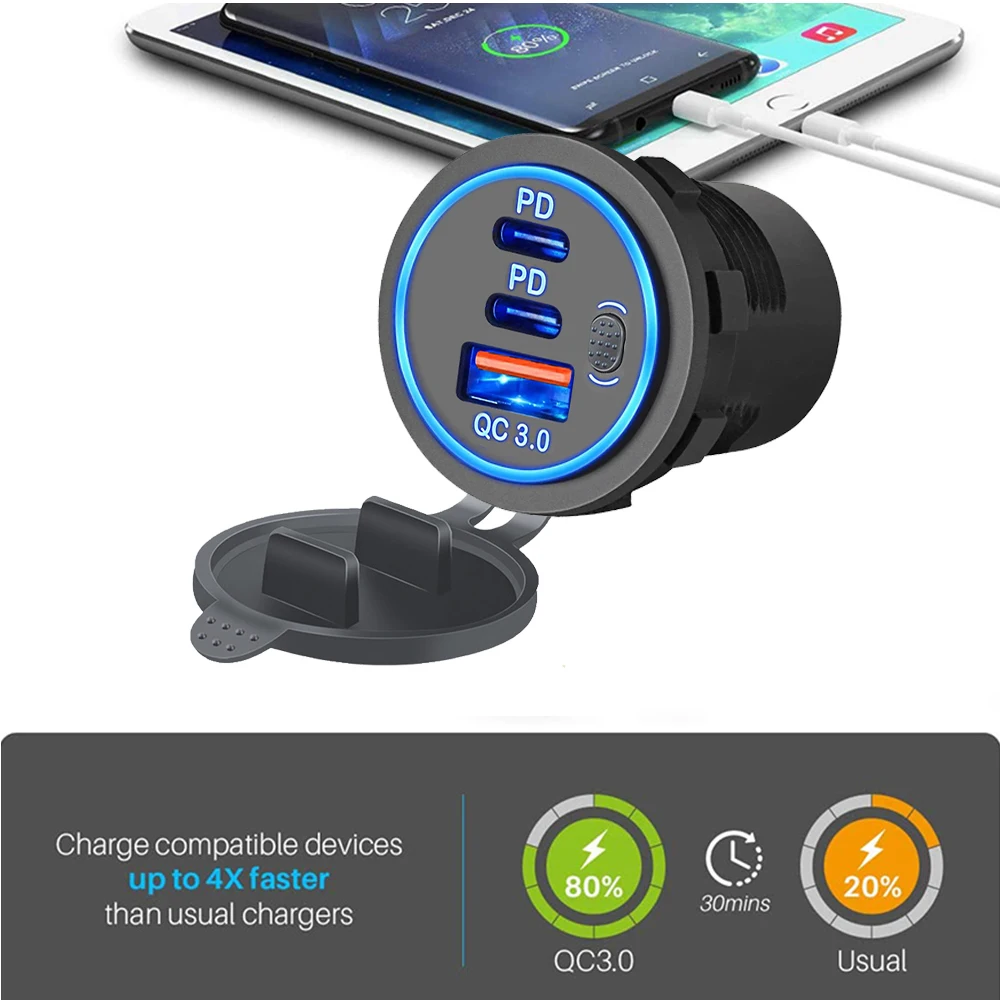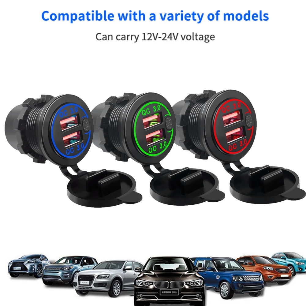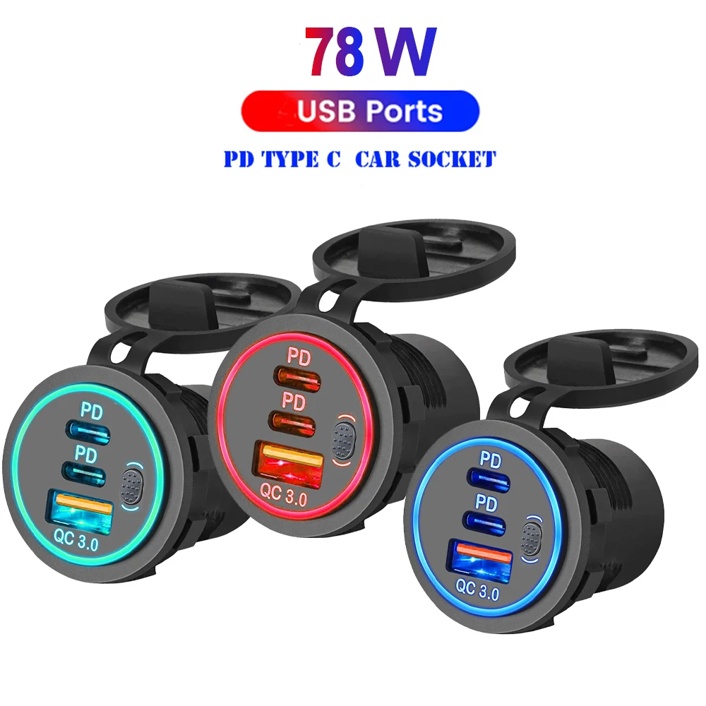 Comprar Cargador de coche Dual PD QC3.0 de 78W, accesorio de enchufe impermeable de carga rápida 3,0, toma de corriente para motocicleta, camión y barco de 12V/24V