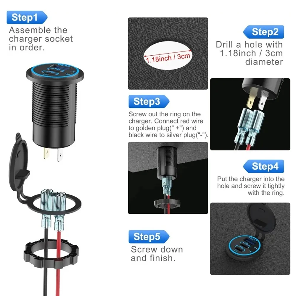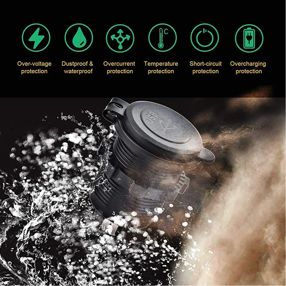 Comprar Cargador de coche Dual PD QC3.0 de 78W, accesorio de enchufe impermeable de carga rápida 3,0, toma de corriente para motocicleta, camión y barco de 12V/24V
