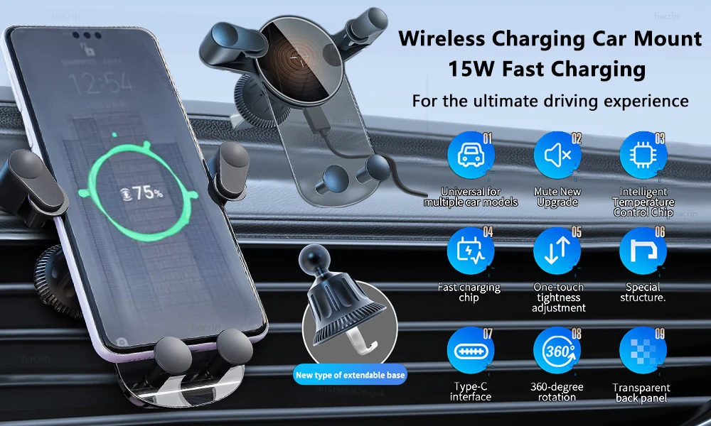 [Ajuste de ángulo flexible y fácil de usar]Nuestro soporte de carga inalámbrico para teléfono de automóvil hacrin se puede adaptar fácilmente al teléfono con la funda del teléfono, lo que le permite disfrutar de una experiencia de carga conveniente.(Tenga en cuenta que las cajas de metal, los imanes, las tarjetas de crédito, las empuñaduras y los soportes pueden interferir con la carga).La esfera giratoria de 360 le permite ajustar el ángulo según sus preferencias personales, lo cual es conveniente para obtener la mejor vista y una conducción segura.