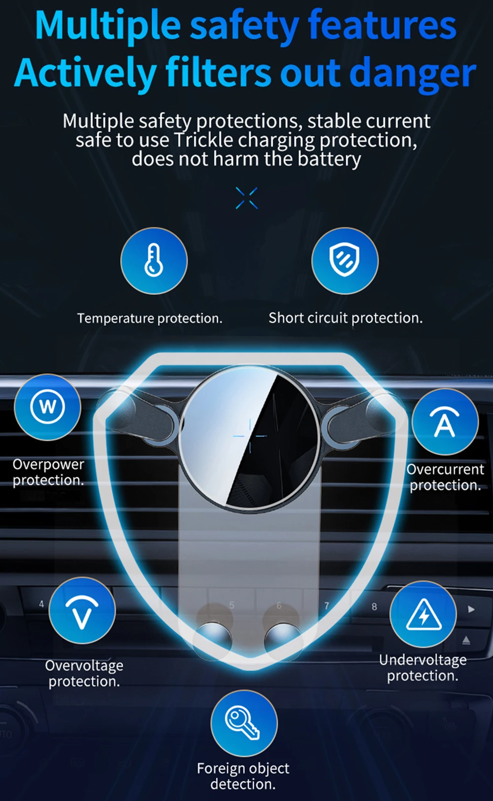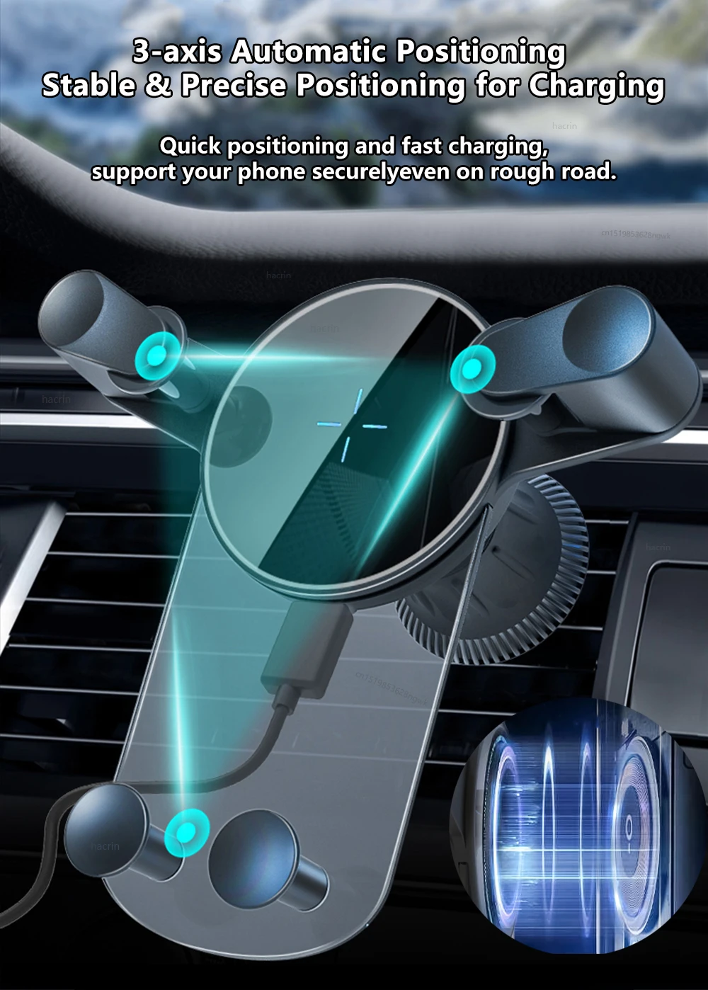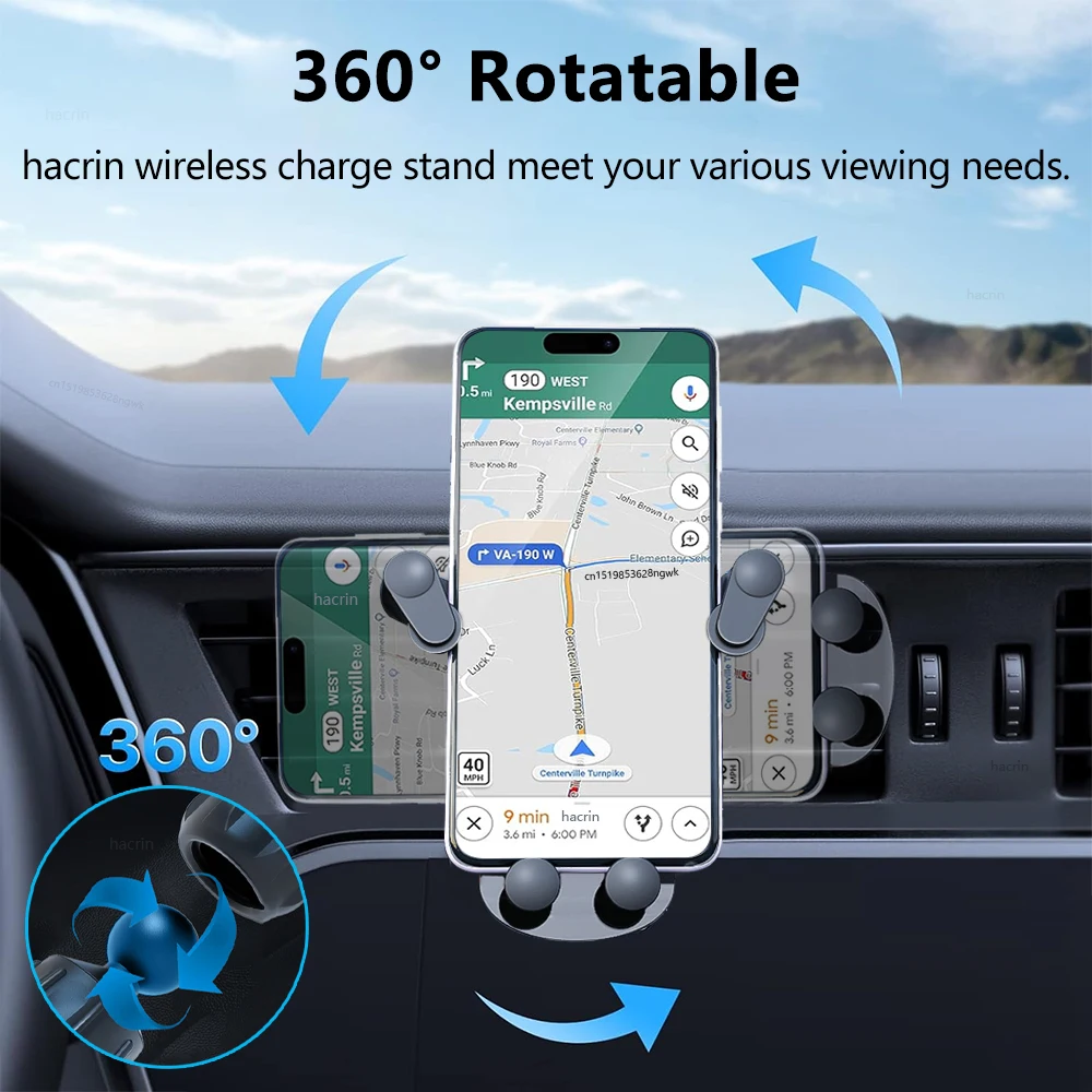 [Diseño 2 en 1 de carga inalámbrica y soporte]El cargador inalámbrico multifuncional y el soporte para teléfono para automóvil están diseñados en uno para hacer su vida más cómoda. Garantiza una experiencia segura de manos libres y elimina los problemas de enrollar el cable. Nuestro soporte para teléfono móvil es compatible con varios tipos de rejillas de ventilación, lo que hace que la navegación GPS y las llamadas telefónicas sean más convenientes que antes.