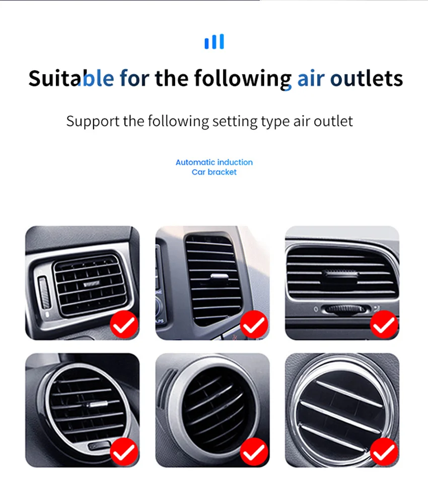 Instalación segura:Este soporte para teléfono para automóvil está equipado con una versión mejorada del clip de ventilación, que puede fijar de forma segura su teléfono inteligente en la ventilación del automóvil.