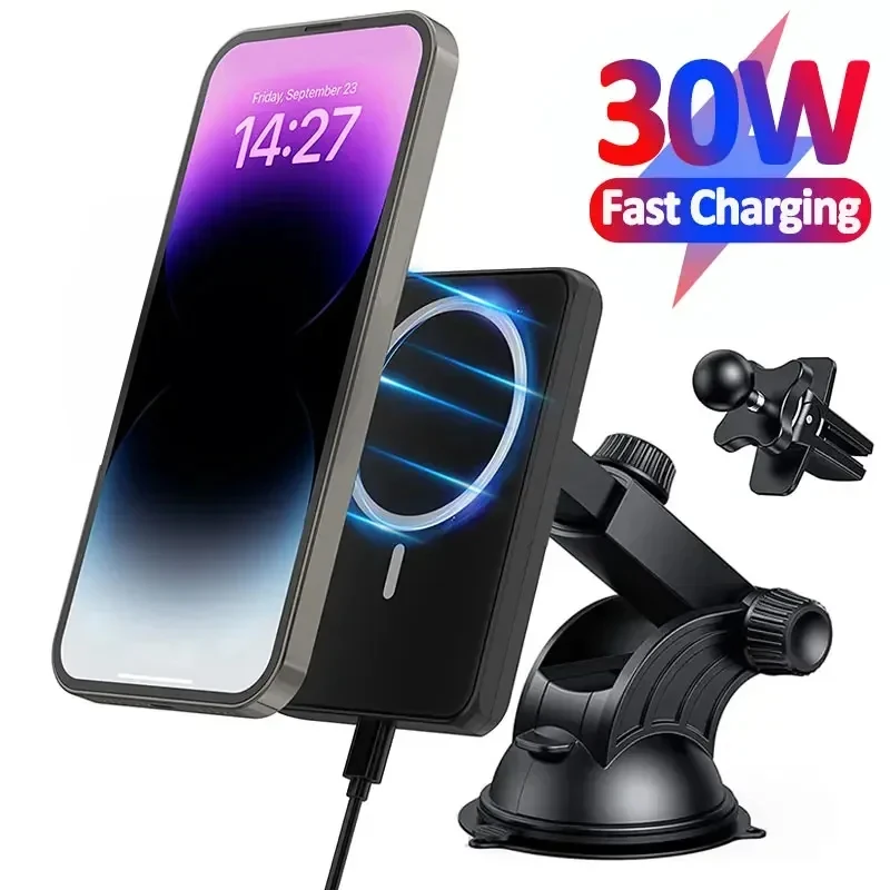 Comprar Cargador de coche magnético inalámbrico rápido de 30W para iPhone 15, 14, 13, 12 Pro Max, Mini soporte para teléfono con salida de aire, estación de carga Macsafe