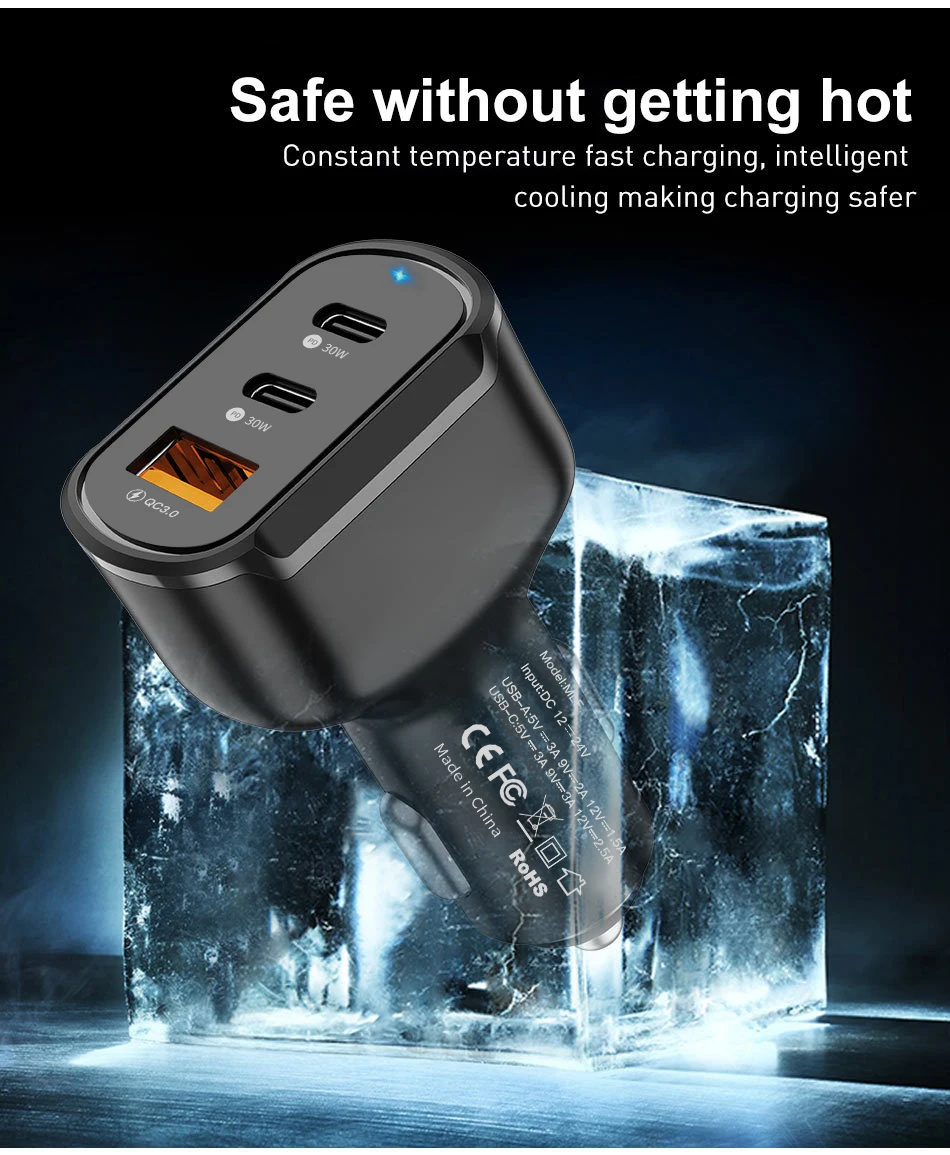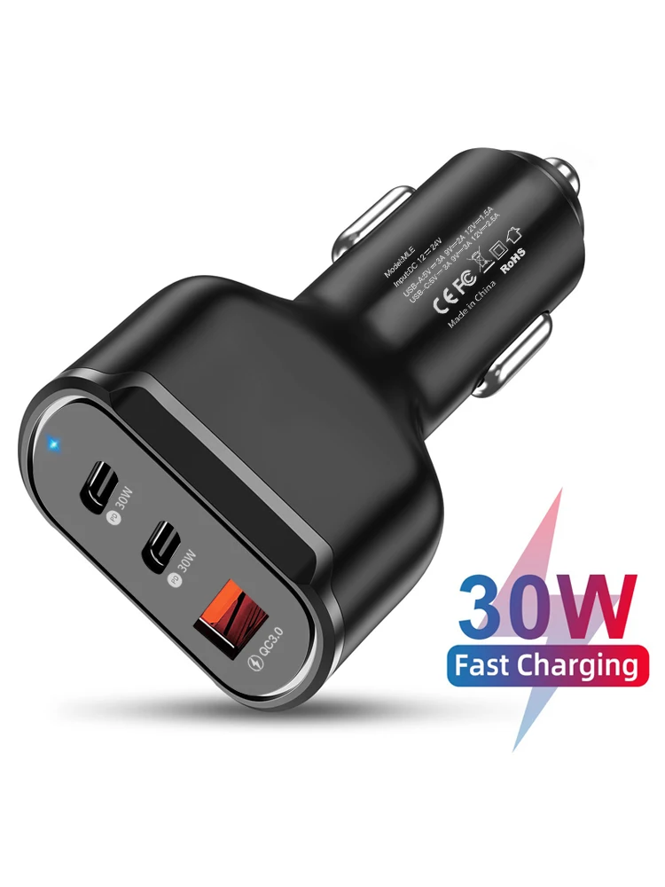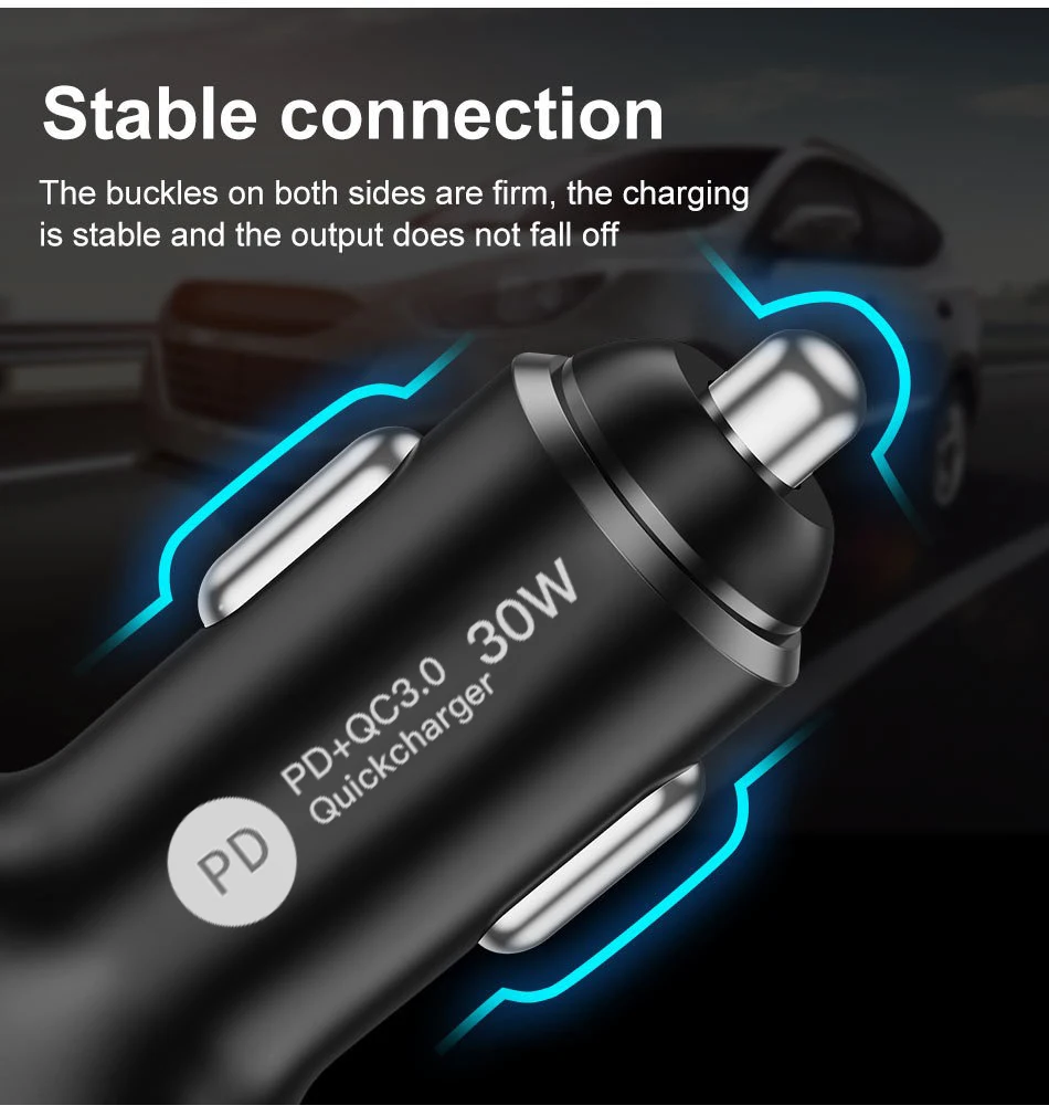 Cargador de coche PD de 30W, carga rápida tipo C, carga de teléfono USB