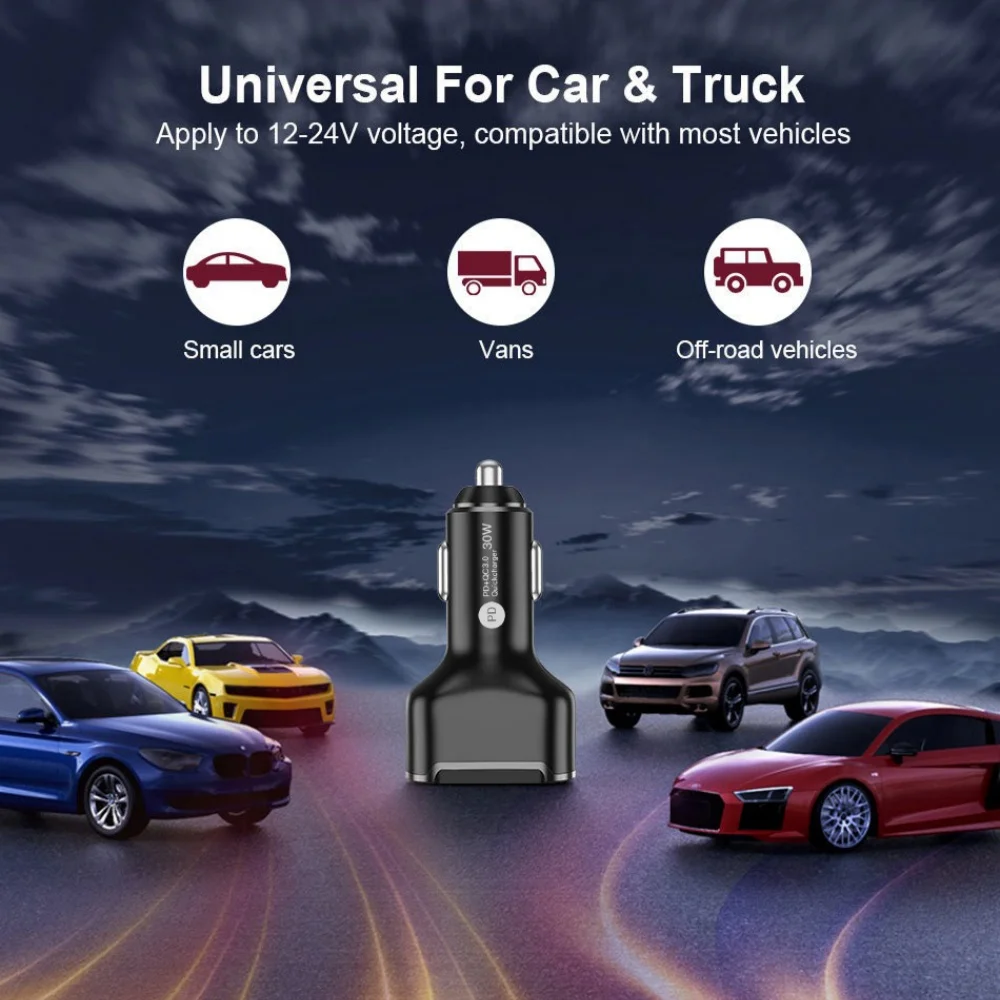 ·Universal para vehículos de 12-24V.El voltaje de entrada del cargador de coche es del, adecuado para la mayoría de los modelos convencionales del mercado.