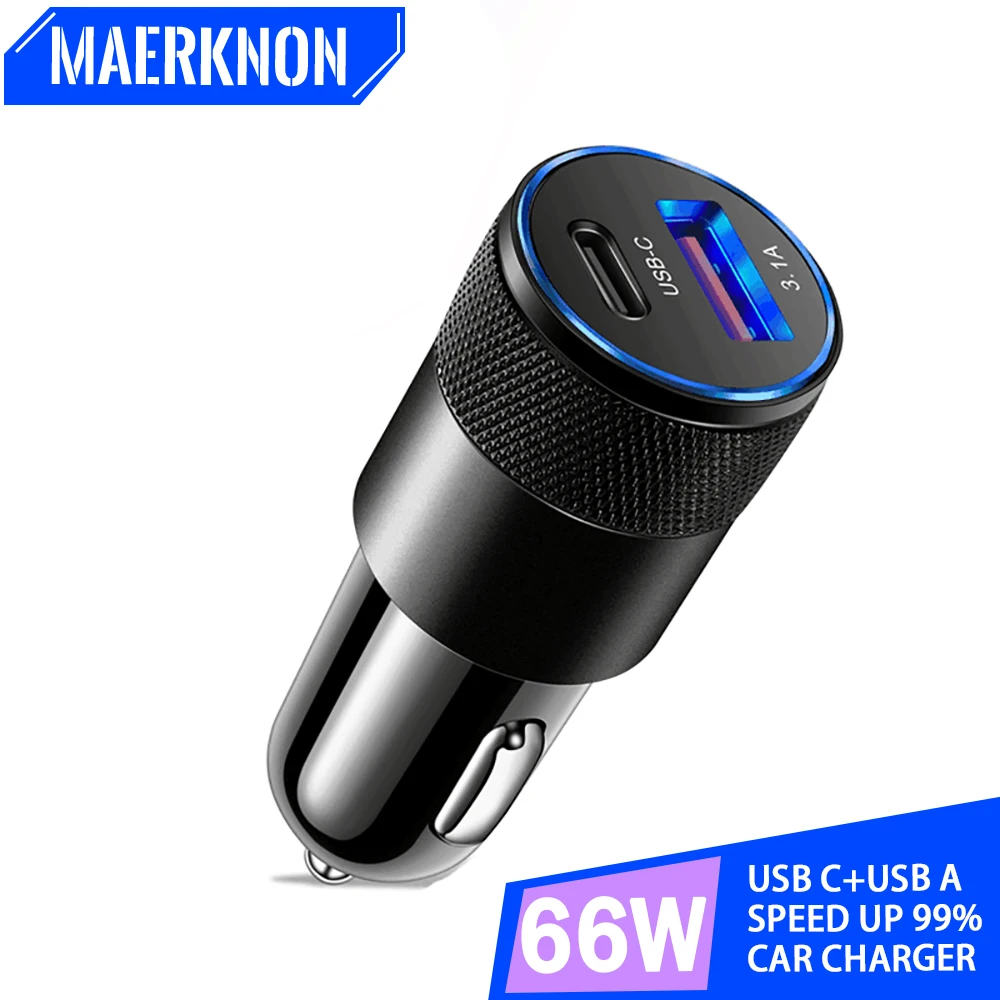 Comprar Cargador de coche PD de 66W, adaptador de carga rápida tipo C para iPhone, Xiaomi, Huawei, Samsung, USB Dual, carga rápida 3,0