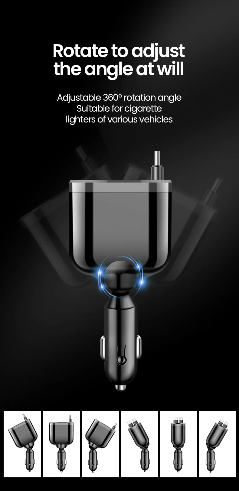 Comprar Cargador de coche retráctil de 120W 5 en 1, carga rápida PD QC3.0, Cable de carga rápida tipo C, adaptador de encendedor de cigarrillos