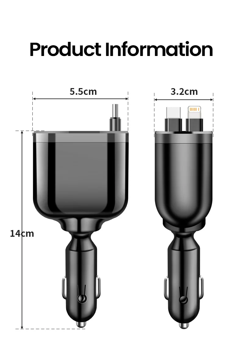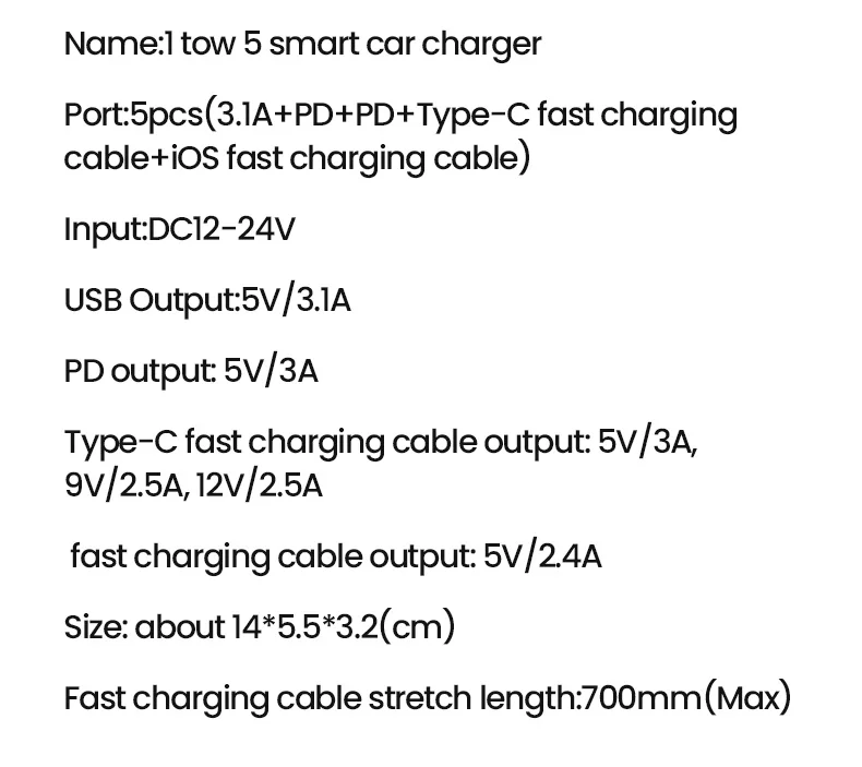 5.El diseño de contacto elástico de metal es adecuado para encendedores de diferentes tamaños y puede transportar una entrada de voltaje amplia de 12 V/24 V, compatible con la mayoría de los modelos de automóviles del mercado 6.Ampliamente compatible, adaptable de forma inteligente a teléfonos móviles, Bluetooth y tabletas, y puede cargar simultáneamente el conductor y el pasajero.