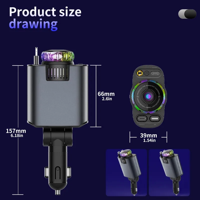 -Diseño multifuncional: este cargador de teléfono móvil para automóvil no solo tiene una función de carga, sino que también viene con un diseño de aromaterapia y luces de cielo estrellado.Integra una variedad de funciones prácticas, una cosa para múltiples usos, conveniente y práctica.