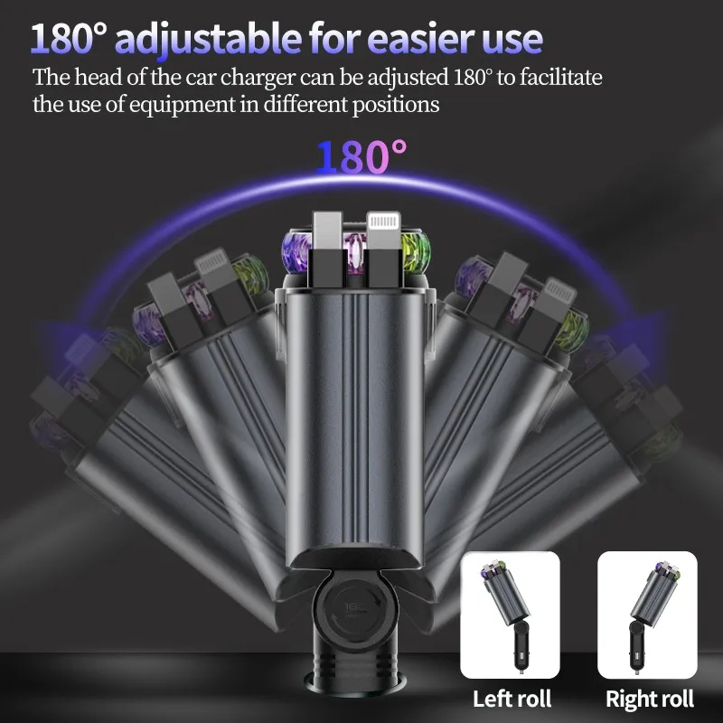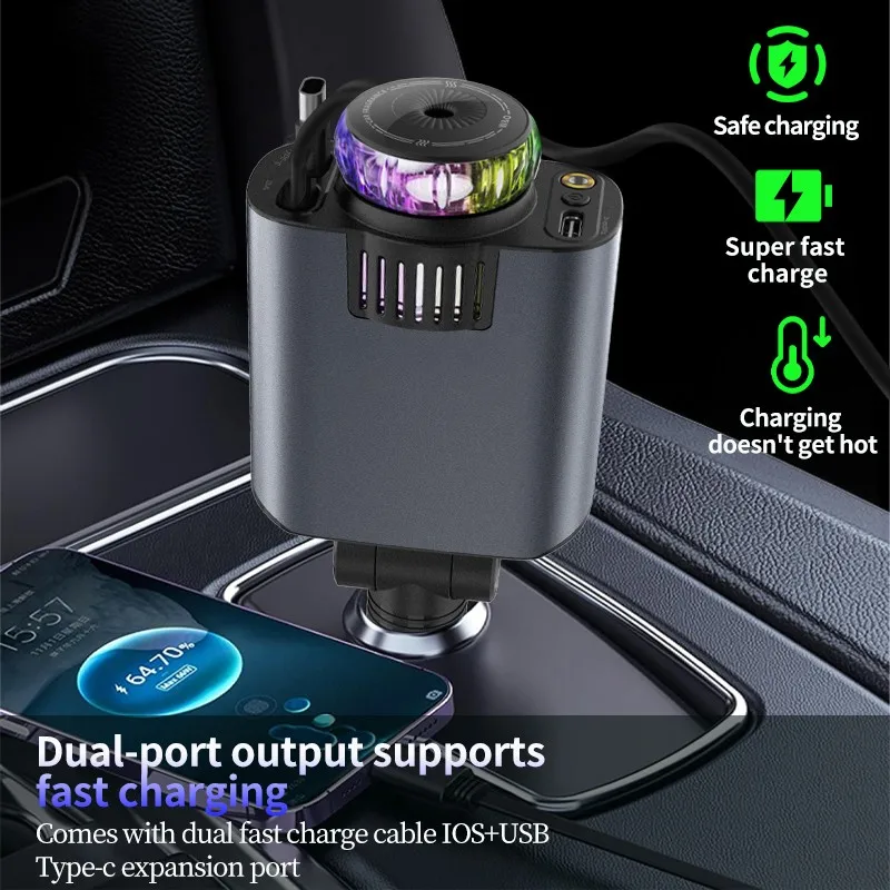 -Carga rápida: admite carga súper rápida tres en uno, que puede proporcionar una carga rápida para teléfonos móviles, tabletas y otros dispositivos al mismo tiempo, ahorrando tiempo de carga y asegurando que el dispositivo siempre mantenga suficiente energía durante la conducción.