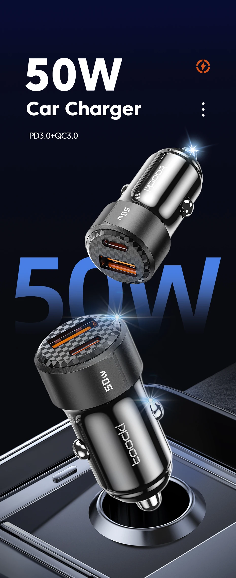 Cargador PD3.0 + QC3.0 del coche 50W