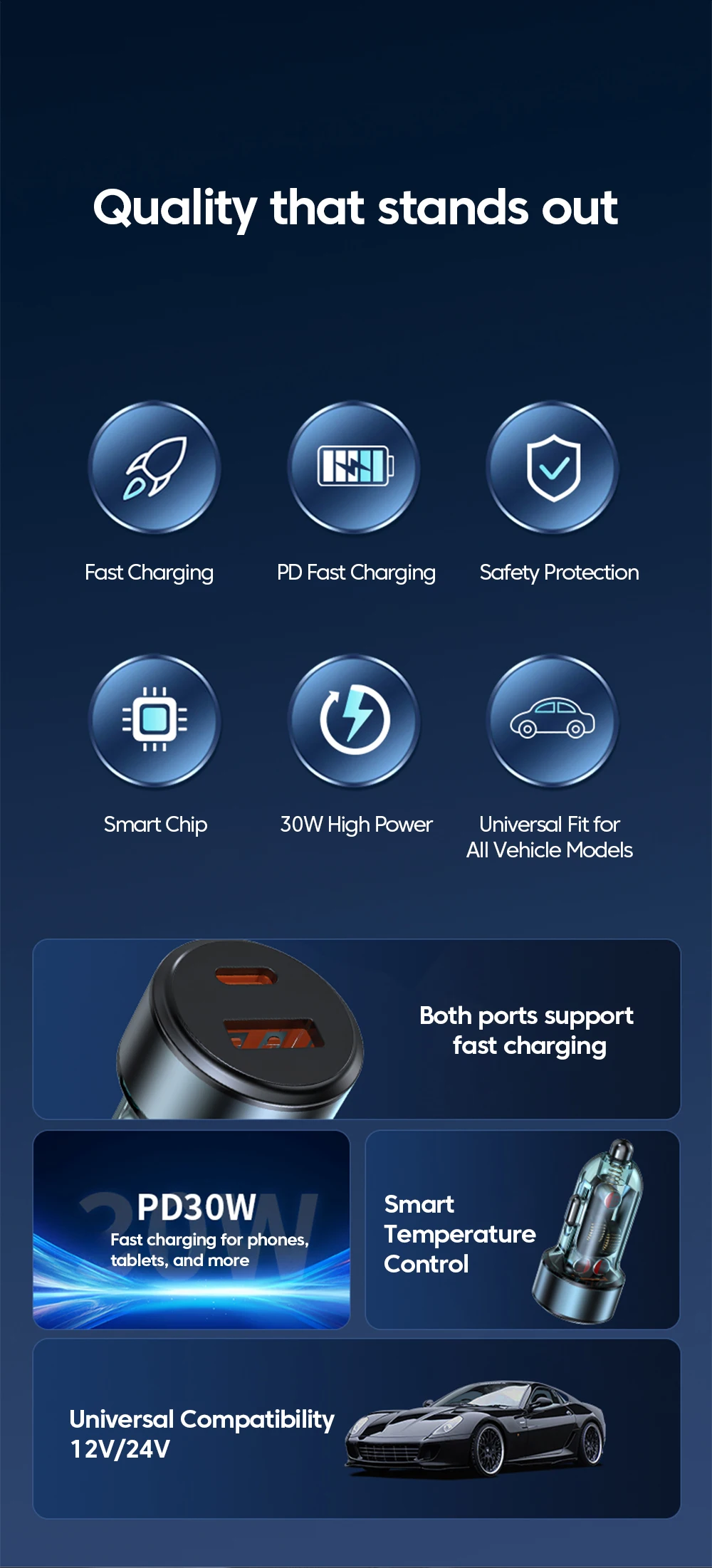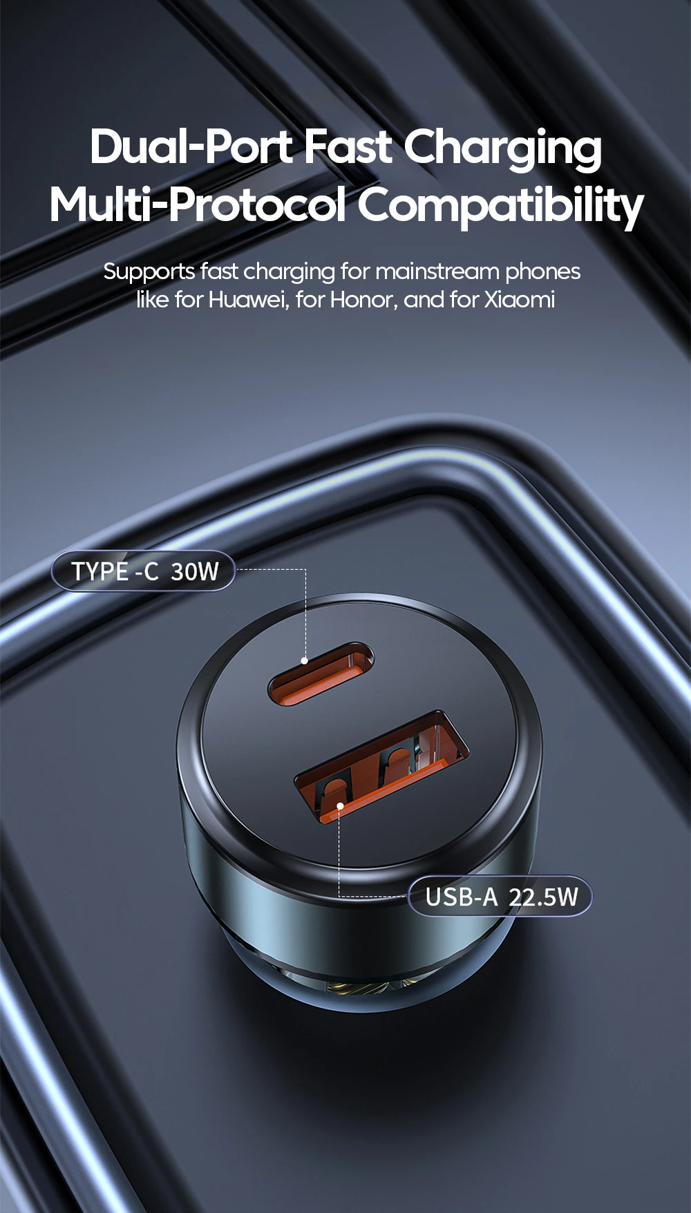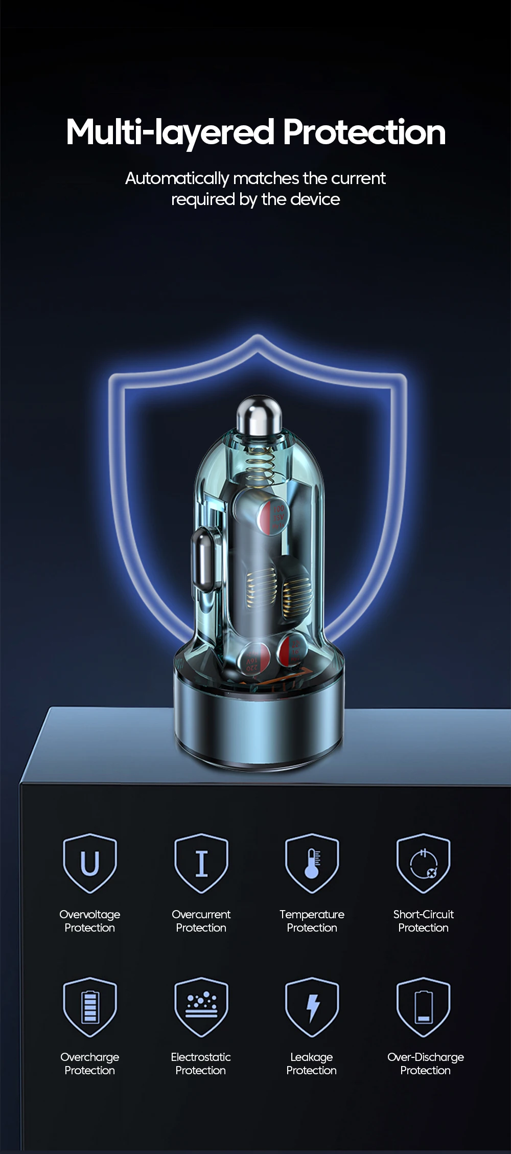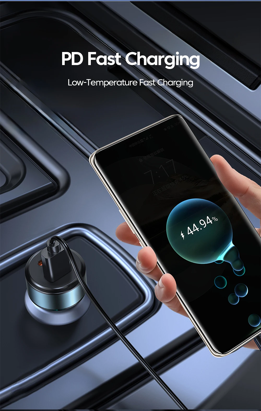 Cargador de coche transparente de 120W PD30W, adaptador de cargador de teléfono de coche USB tipo C de carga rápida para iphone 15 16 Samsung Huawei Xiaomi