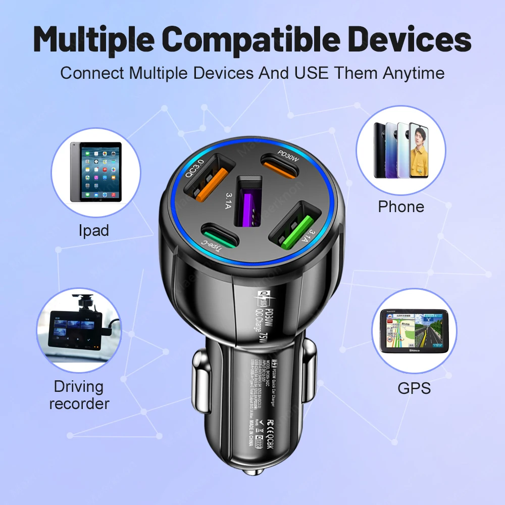 Nombre del producto: Cargador de teléfono para automóvil de carga rápida One Drag Five 3USB + 2PD de 75W