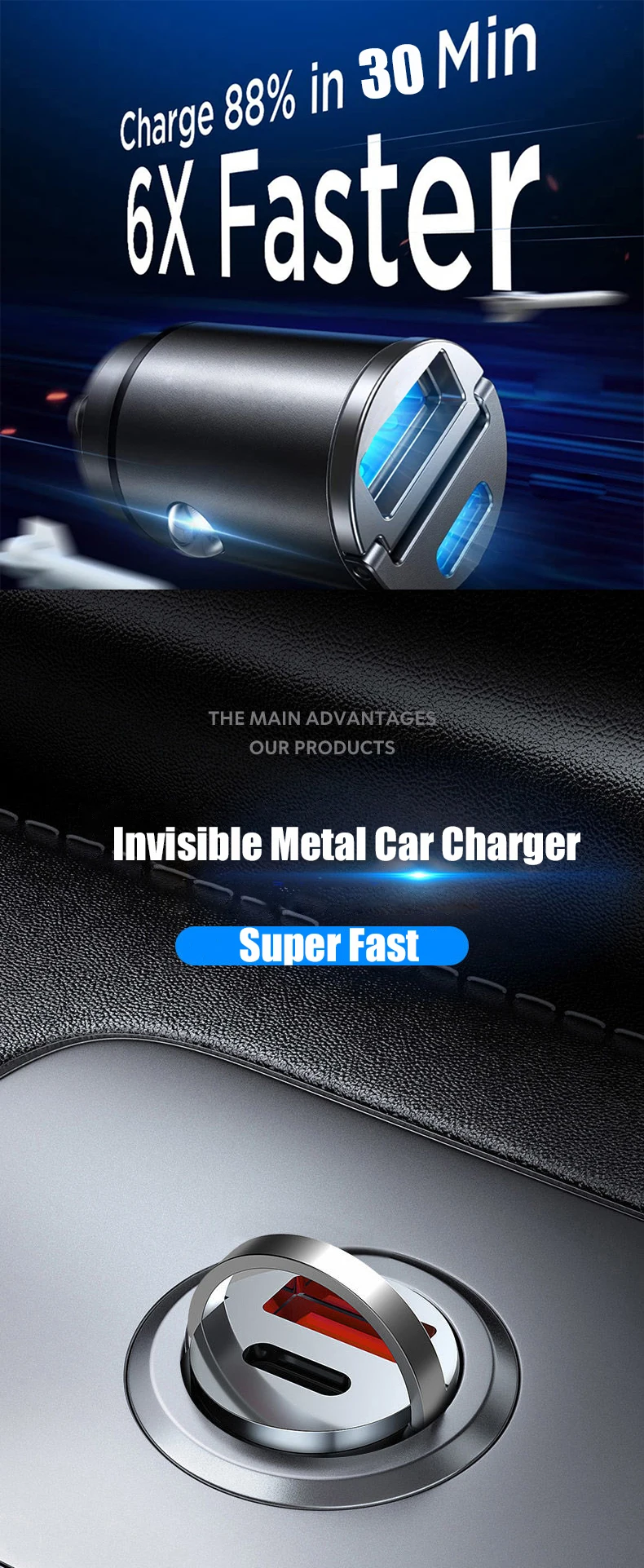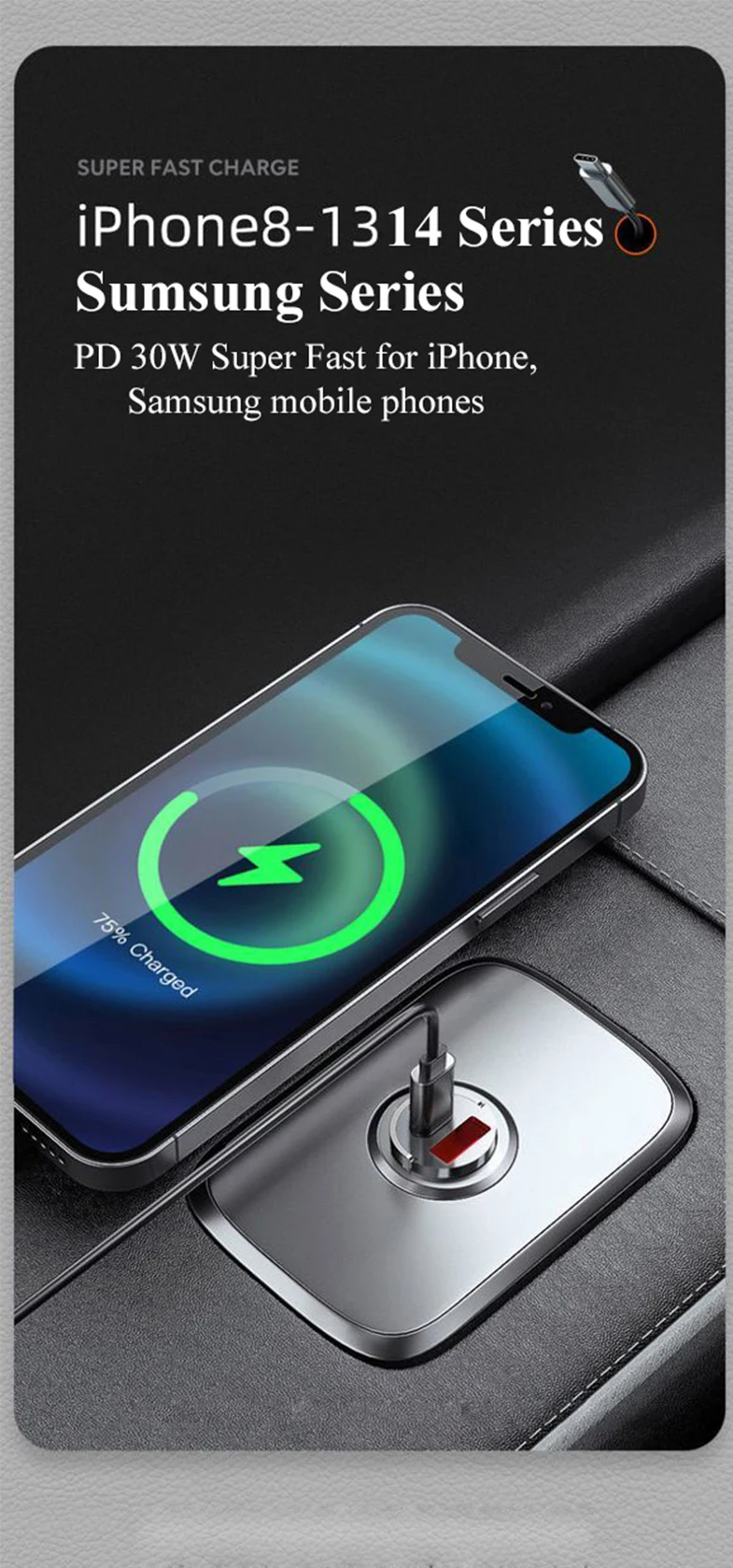 ⚡Fuente de Alimentación inteligente de doble Chip: el chip de identificación inteligente de doble núcleo PD30W y QC30W incorporado emite 30W de corriente de carga rápida en cada uno de sus dos núcleos, que es un cargador de coche rápido seguro y de alta velocidad sin dañar el dispositivo. NOTA: Admite la carga simultánea de 2 dispositivos, pero NO admite la carga superrápida simultánea.