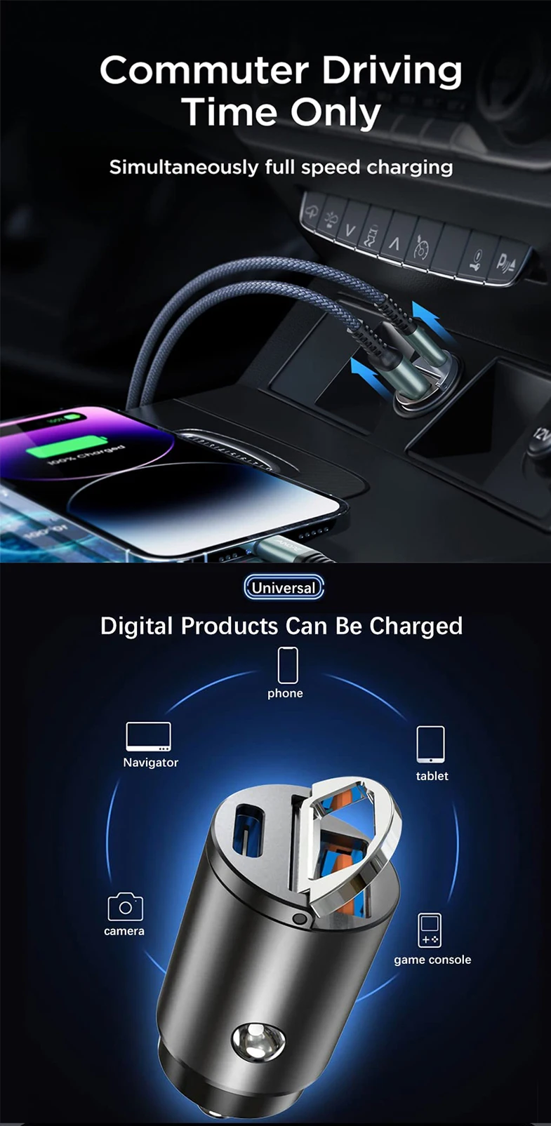 DISEÑO DE ANILLO DE PULL DEL TAMAÑO DEL PULGAR: El cargador de coche impecable más pequeño del mercado hasta ahora. Con un cuerpo de tamaño pequeño, se ajusta cómodamente y al ras en la salida del encendedor no sobresale, lo que se esconde perfectamente en sus encendedores de cigarrillos. Nunca aparezca mientras conduce y no bloqueará la cubierta del encendedor de cigarrillos. Por lo tanto, diseñamos un anillo de tracción para ayudarlo a desconectarse del encendedor de cigarrillos del automóvil más fácilmente.