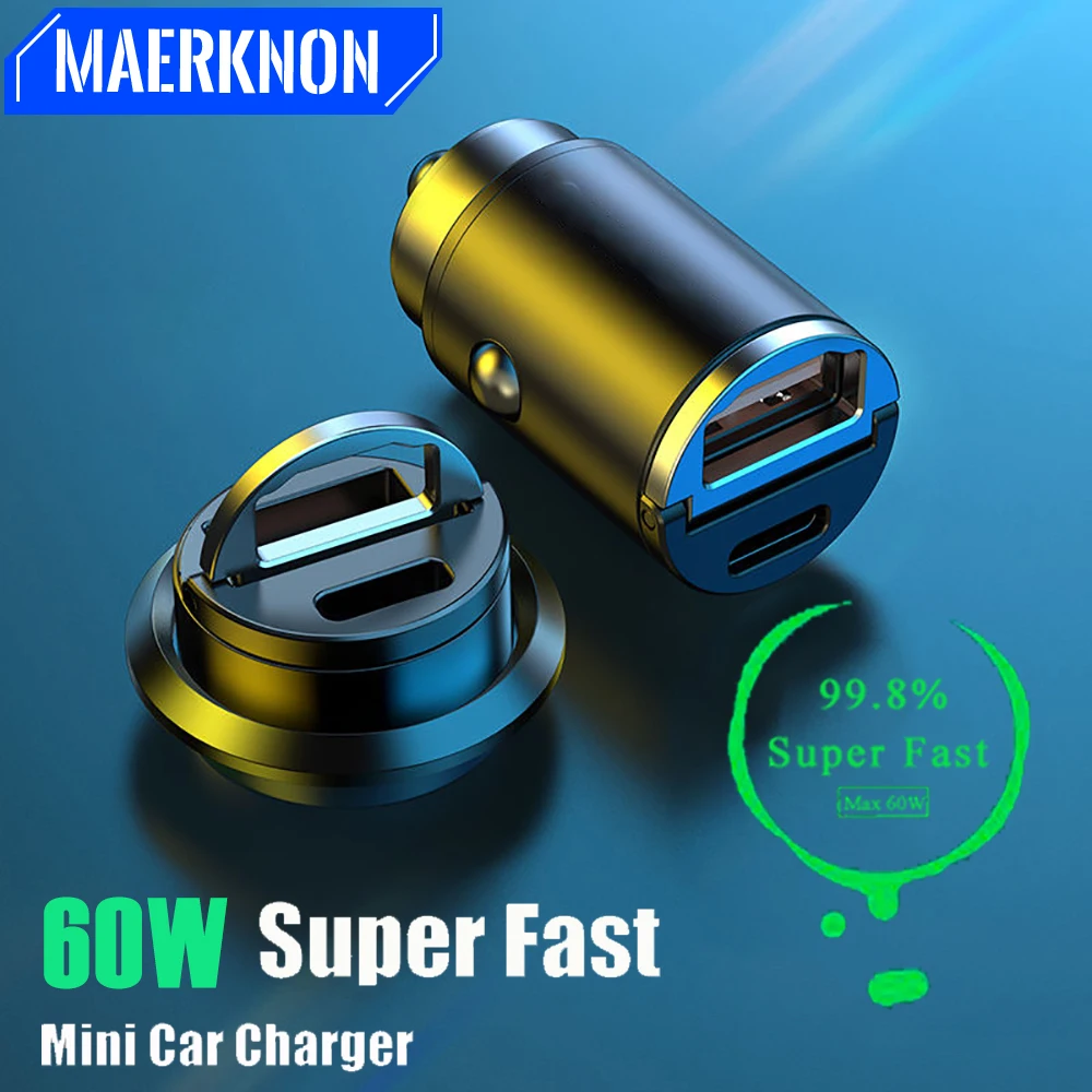 Cargador de coche USB de 60W QC3.0 PD TypeC, adaptador de carga de coche, carga rápida para iPhone13, Xiaomi, Samsung, Huawei, cargadores rápidos para teléfono móvil