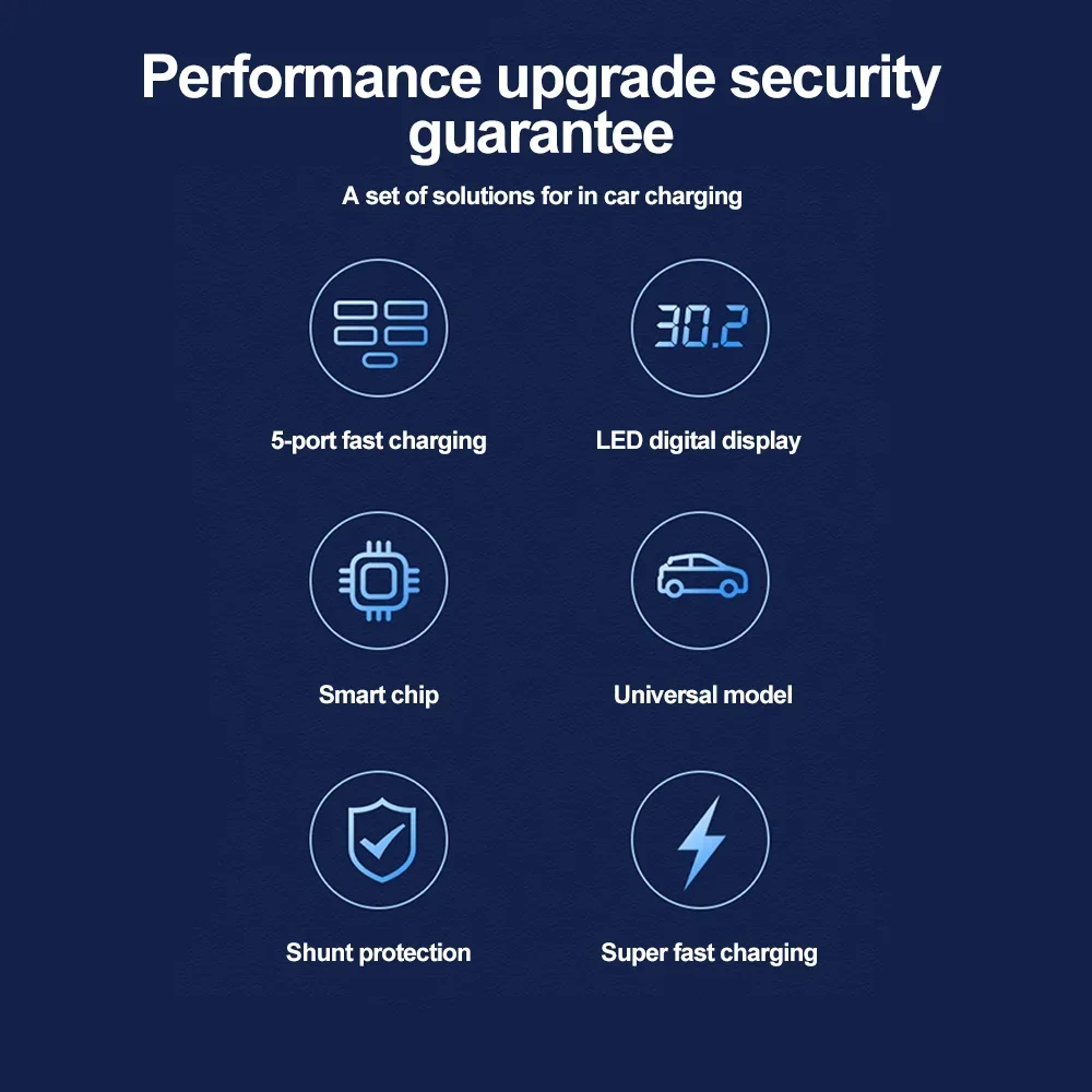 1.Salida de alta potencia de 250 W: este cargador USB para automóvil tiene una potencia de salida de hasta 250 W, lo que significa que puede cargar rápidamente varios dispositivos al mismo tiempo, incluidos teléfonos móviles, auriculares, relojes de pulsera, etc.