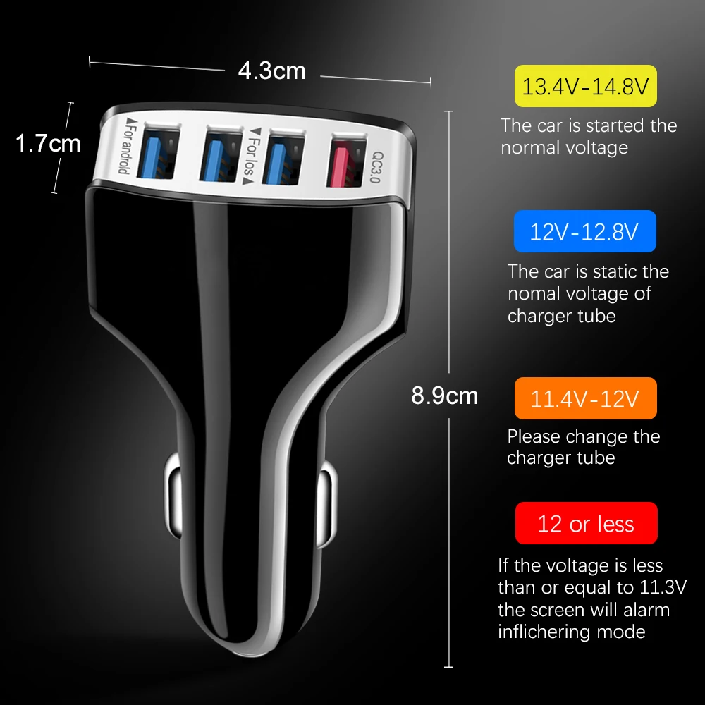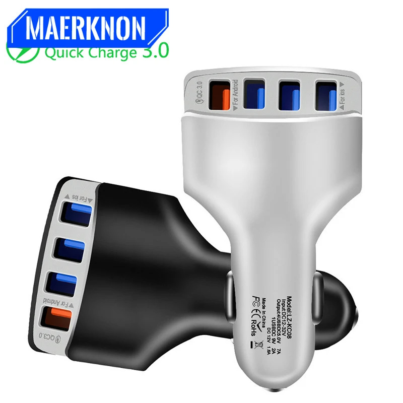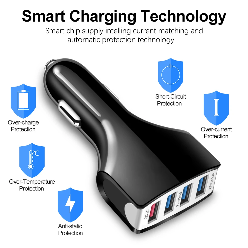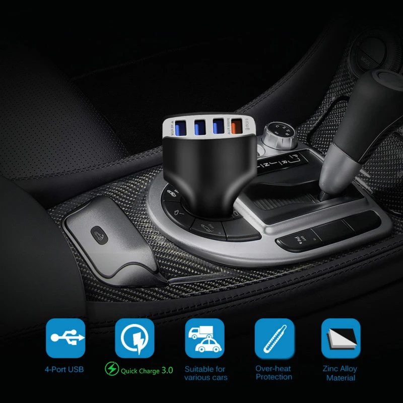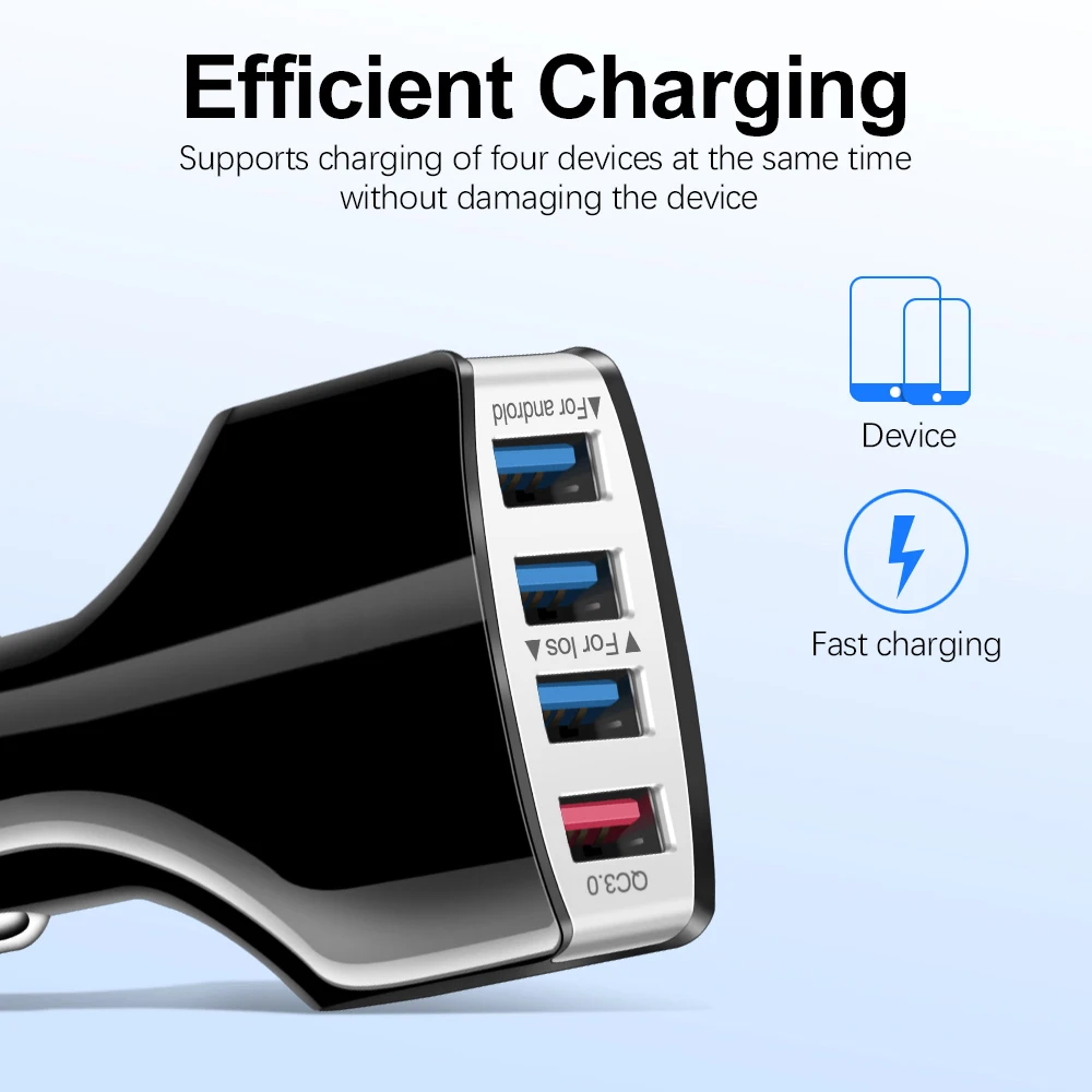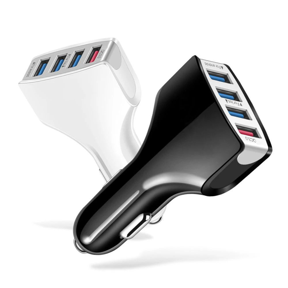 Comprar Cargador de coche USB de carga rápida, 4 puertos, portátil, para Smartphone, iPhone 12, Xiaomi, Huawei