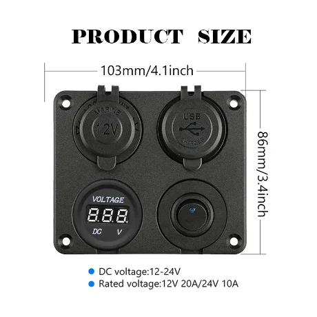 Comprar Cargador de coche USB Dual 3.1A 4.2A, voltímetro LED de 12V y 24V, interruptor de palanca de encendido/apagado, enchufe de encendedor de cigarrillos para pista de coche, barco y RV