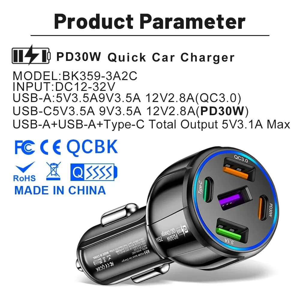 • High Power Output :With a maximum output power of 75W, this car charger can handle even the most power-hungry devices like tablets and laptops.