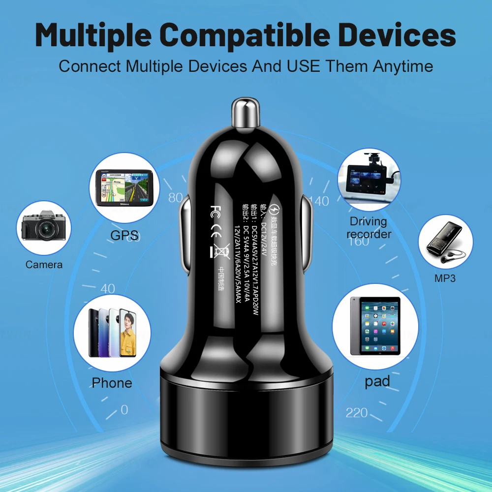 4.Amplia compatibilidad:Eficazmente compatible con varios teléfonos móviles, tabletas, grabadoras de automóviles y otros dispositivos USB para cargar, ampliamente utilizado en los modelos convencionales, con un voltaje de entrada de 12-24 V, compatible con varios modelos de encendedores de cigarrillos, incluidos automóviles domésticos y todoterreno de negocios. coches deportivos, etc.