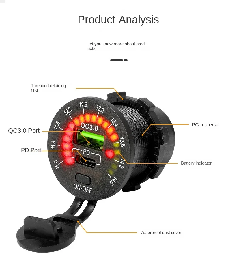 Comprar Cargador de coche USB tipo C PD QC 3,0, carga rápida 12V/24V, entrega de energía a prueba de agua, 36W, para motocicleta, barco, RV, ATV