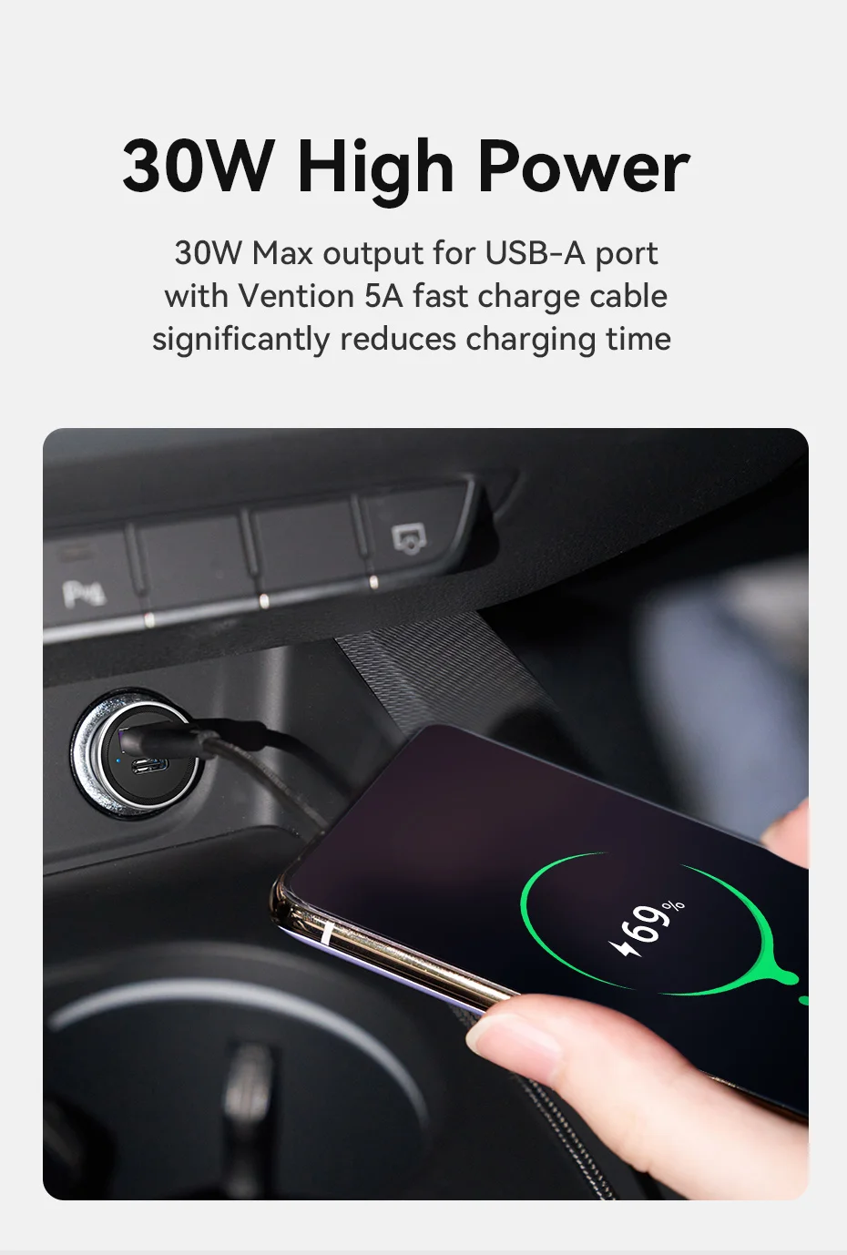 Comprar Cargador de coche Vention de carga rápida SCP QC4.0 QC3.0 USB tipo C PD carga rápida de coche para Xiaomi Huawei iPhone Samsung cargador de teléfono