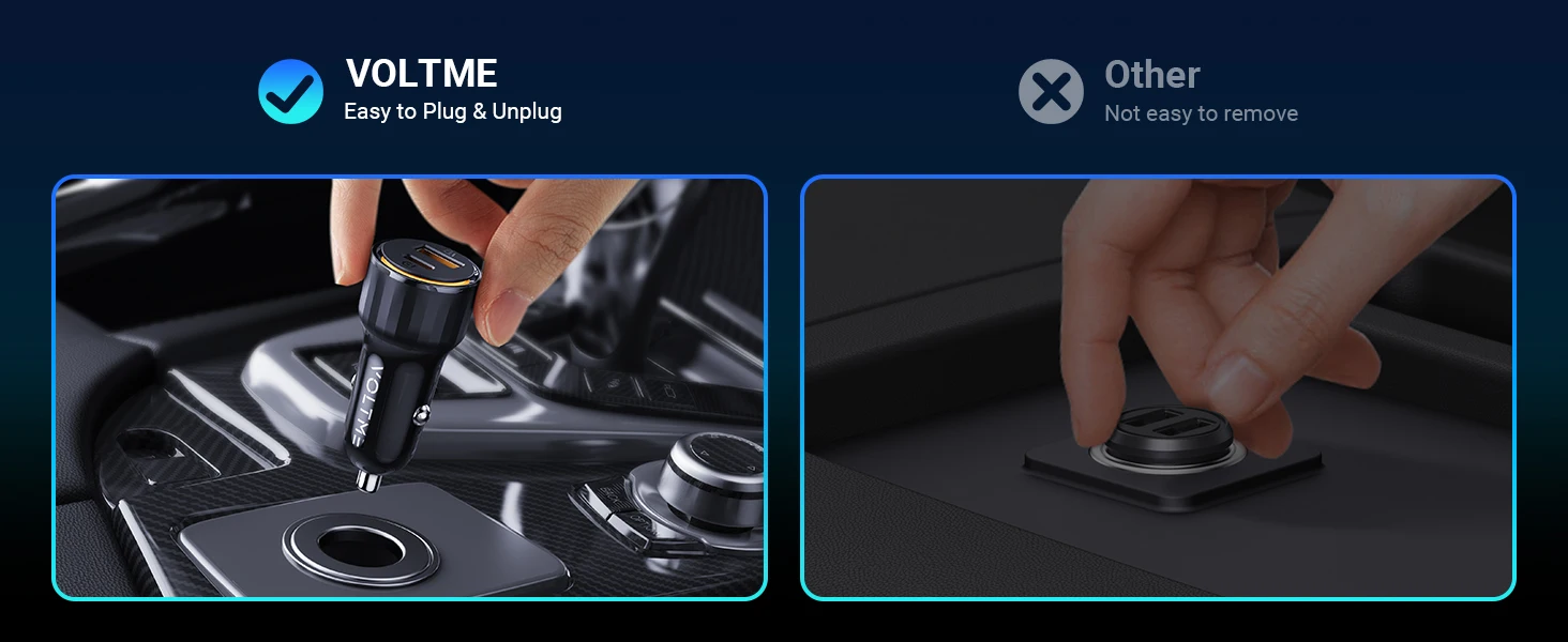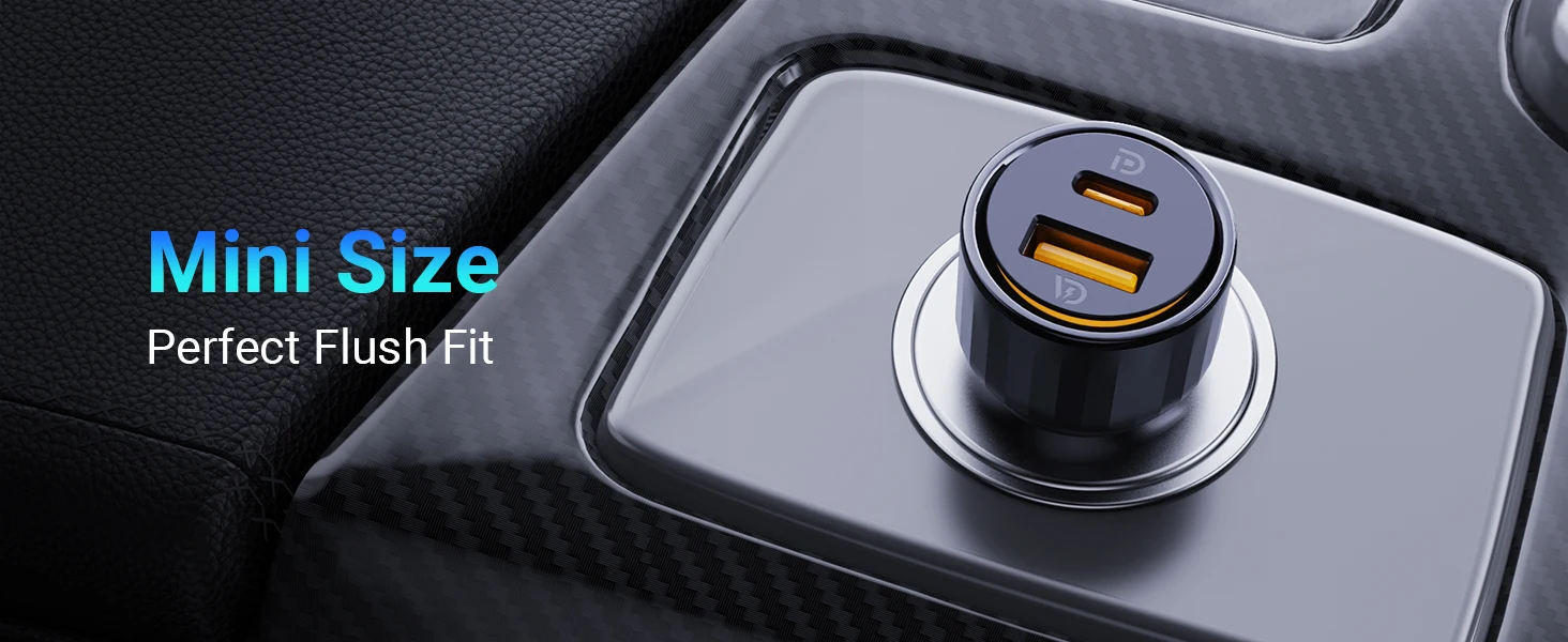 Dimensiones ultracompactas, este cargador para automóvil está diseñado para caber en los espacios más pequeños y al mismo tiempo proporciona una capacidad de carga excepcional.
