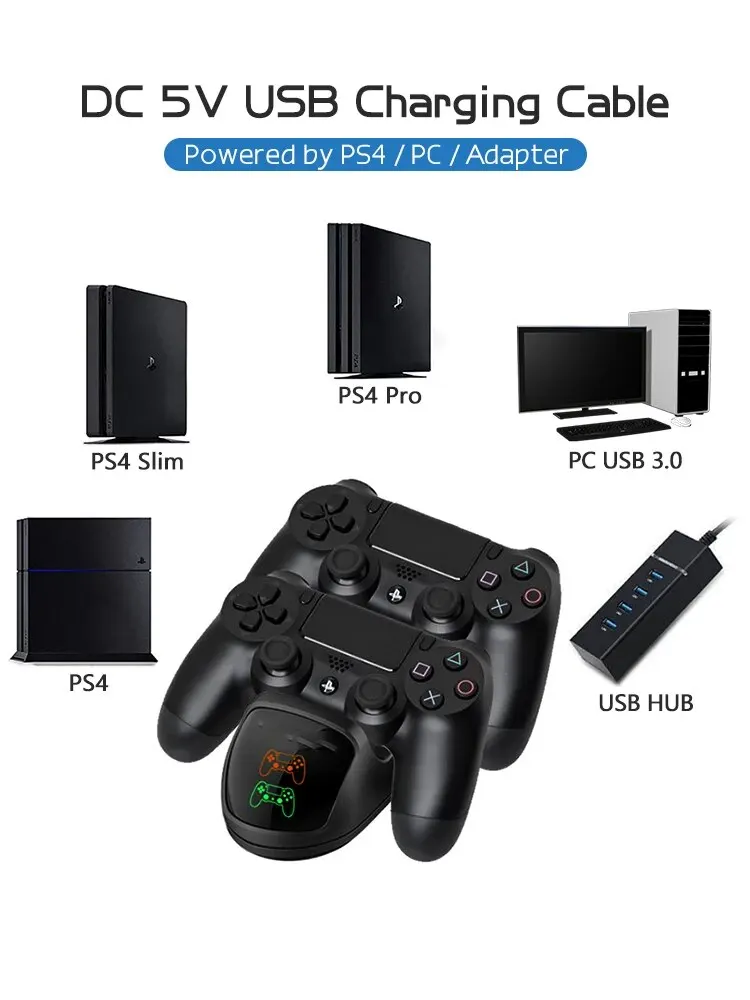 • Compatibilidad con PS4 Slim y PS4 Pro:Este cargador es compatible tanto con PS4 Slim como con PS4 Pro, lo que lo convierte en una opción versátil para todas sus necesidades de carga.