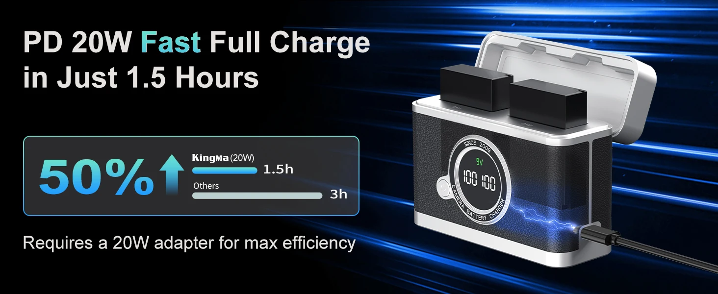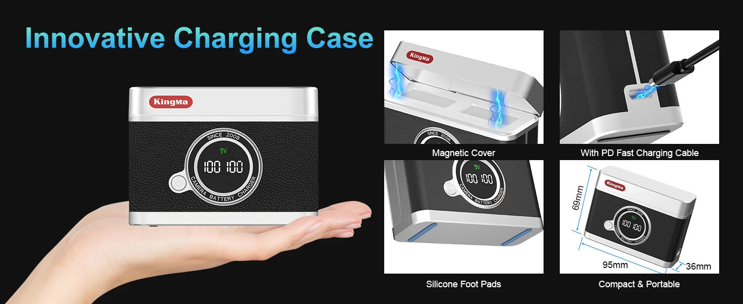 Elimina las conjeturas al cargar.La pantalla LCD nítida muestra el estado de carga en tiempo real de cada batería de forma independiente, mostrando el porcentaje exacto y el modo de carga (Rápido/Estándar).Esta administración visual de energía le permite planificar con precisión sus tomas, decir adiós a la ansiedad por el poder y garantizar que su flujo creativo nunca se interrumpe.