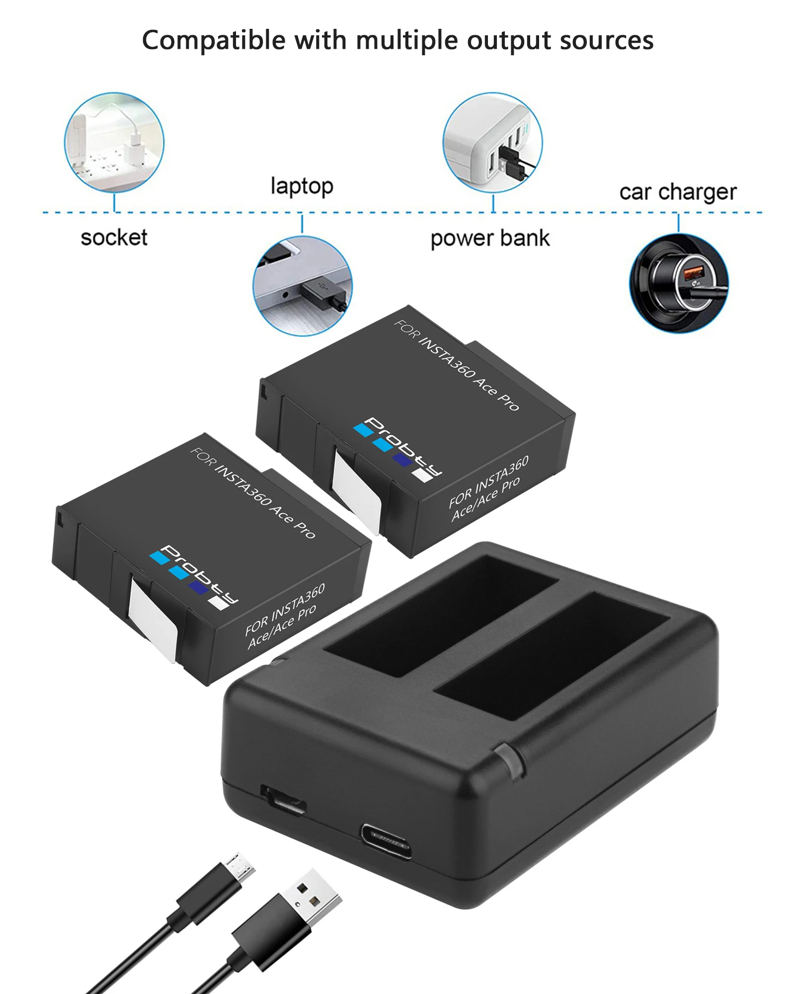 Característica:1. 100% nuevo y de alta calidad.2. El producto coincide con la descripción.3. Alta densidad de energía, vida extra larga, sin memoria.4. Batería de iones de litio de alta capacidad/recargable con celda Premium.5. Potencia extra para tu cámara de acción.La Duración del disparo no es inferior al original.6. Protección contra sobrecalentamiento y protección contra sobrecarga.Especificación de la batería:Batería Para Insta360 Ace proVoltios: 3,85 VCapacidad: 2200mAh 8.5WhTipo de batería: batería de iones de litio recargablePaquete: SíEspecificación del cargador:Cargador Para Insta360 Ace proEntrada: 5V 2.1ASalida: 4,4 V 0.7APaquete: SíEstado de carga:Carga: luz roja siempre encendidaCompleto: luz verdeSin batería: luz verdeCompatible con:Para Insta360 Ace Pro Insta360 AceEl paquete incluyeComo usted elija