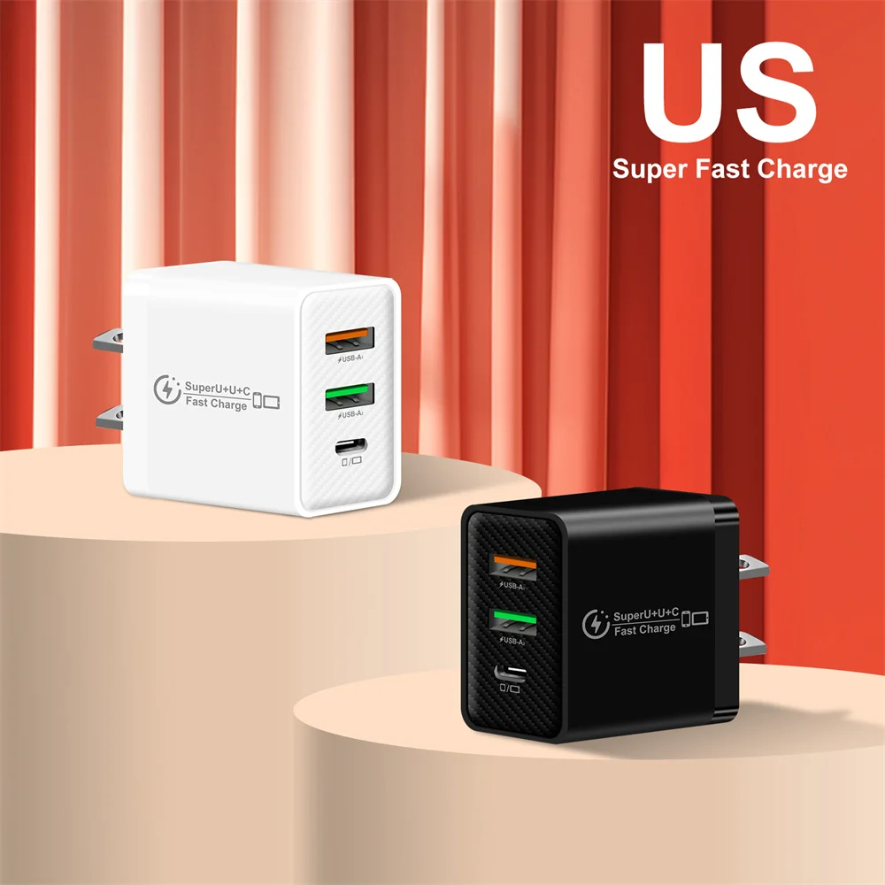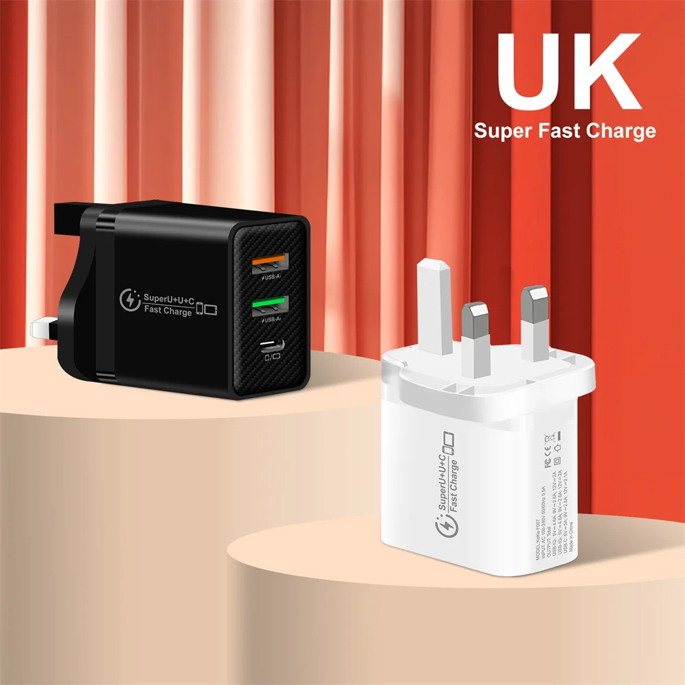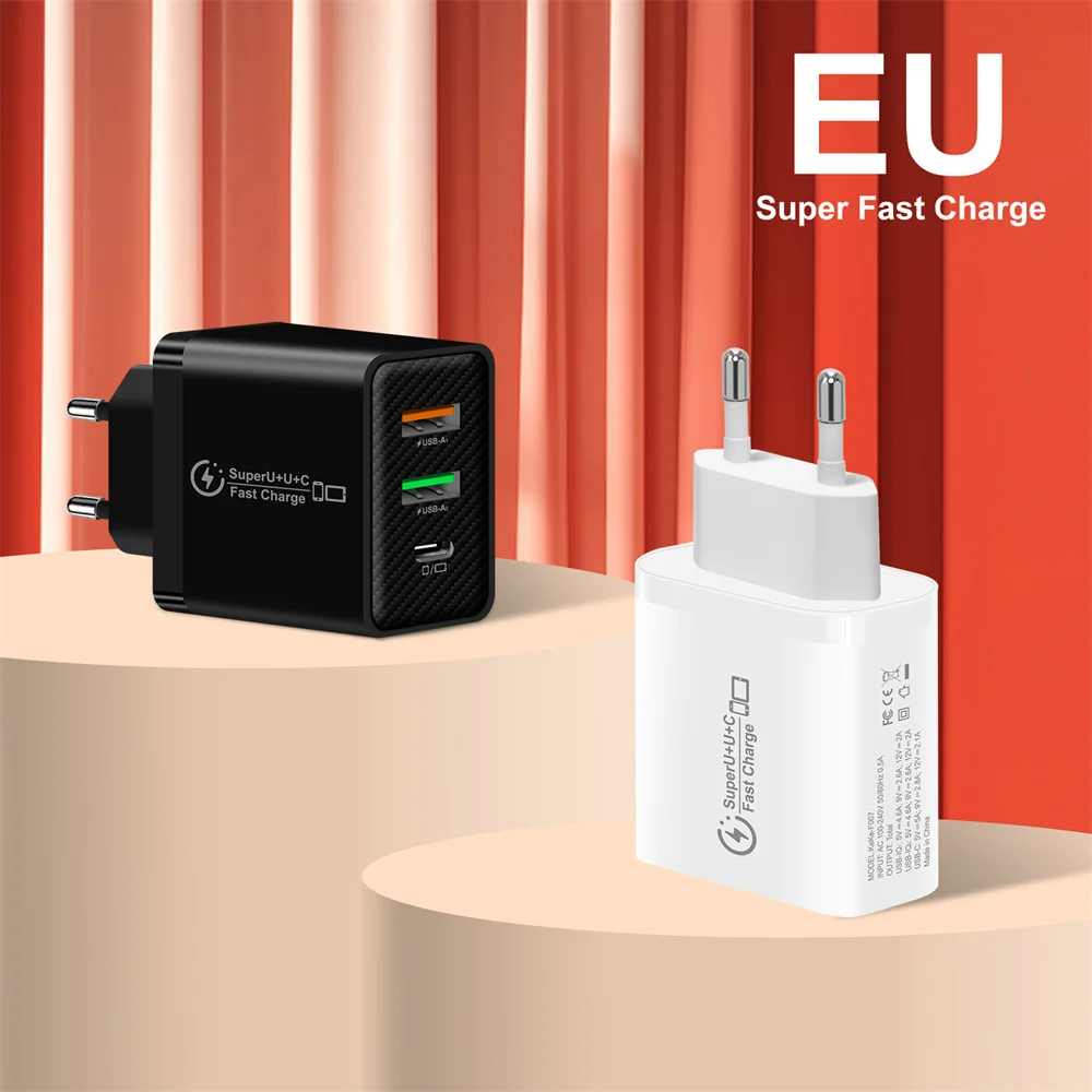 Cargador de enchufe UE/EE. UU./Reino Unido USB tipo C PD + 2USB cargador QC3.0 3 puertos 48W USB C cargador de teléfono móvil para iPhone Samsung Xiaomi Huawei