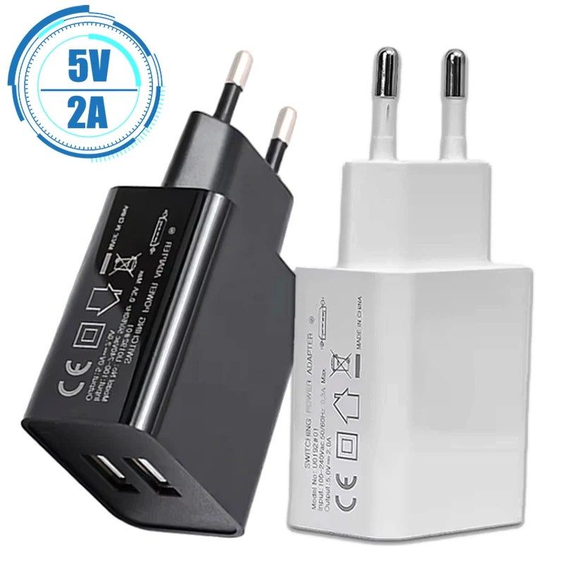 Comprar Cargador de enchufe USB Dual de 5V 2A, adaptador de carga rápida de corriente alterna de pared USB Dual Universal para Iphone, Android, Xiaomi, Samsung y Huawei
