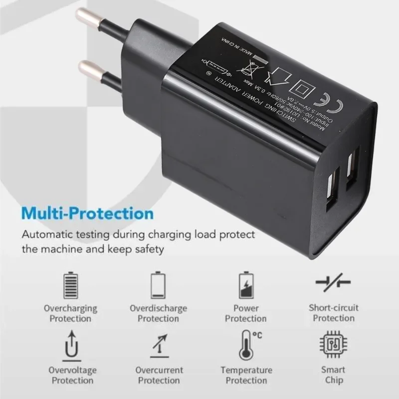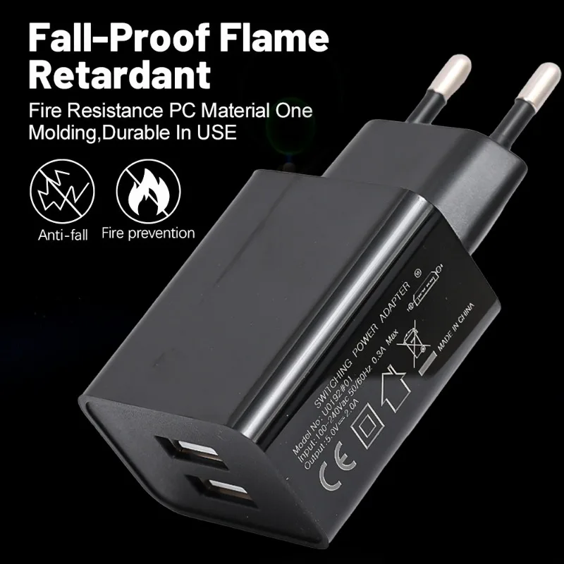 Cargador de enchufe USB Dual de 5V 2A, adaptador de carga rápida de corriente alterna de pared USB Dual Universal para Iphone, Android, Xiaomi, Samsung y Huawei