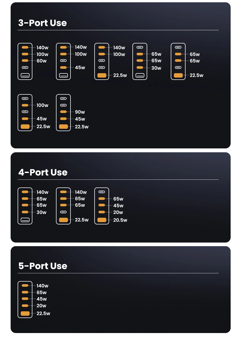 140W 100W de salida simultánea, ¡impresionante 👍👍! Lo compré junto con un trato de ropa interior y estoy muy satisfecho. Puede cubrir 4 MacBooks M1.