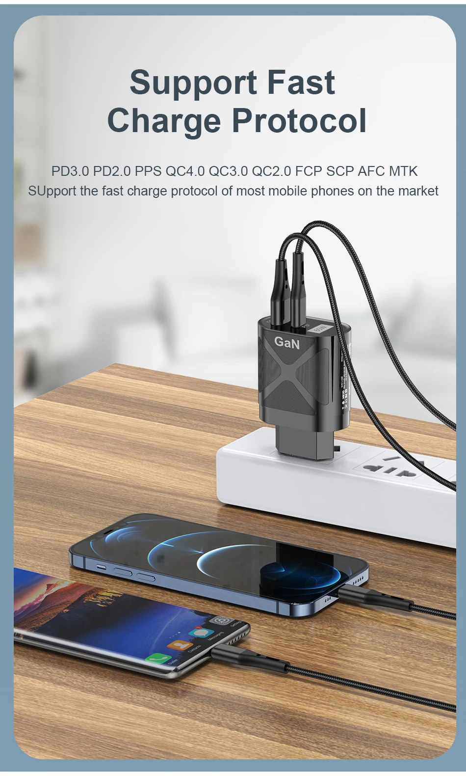 Comprar Cargador Gan de 65W para Australia, Nueva Zelanda, enchufe AU, PD, 33W, Cargador rápido QC 3,0, adaptador USB para iPhone 14, 13 Pro, Max, Samsung S22