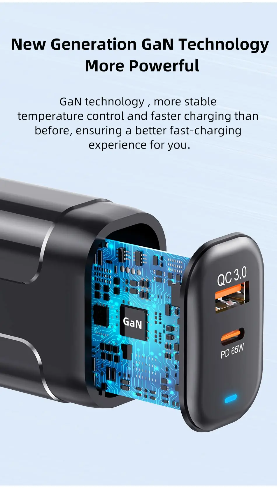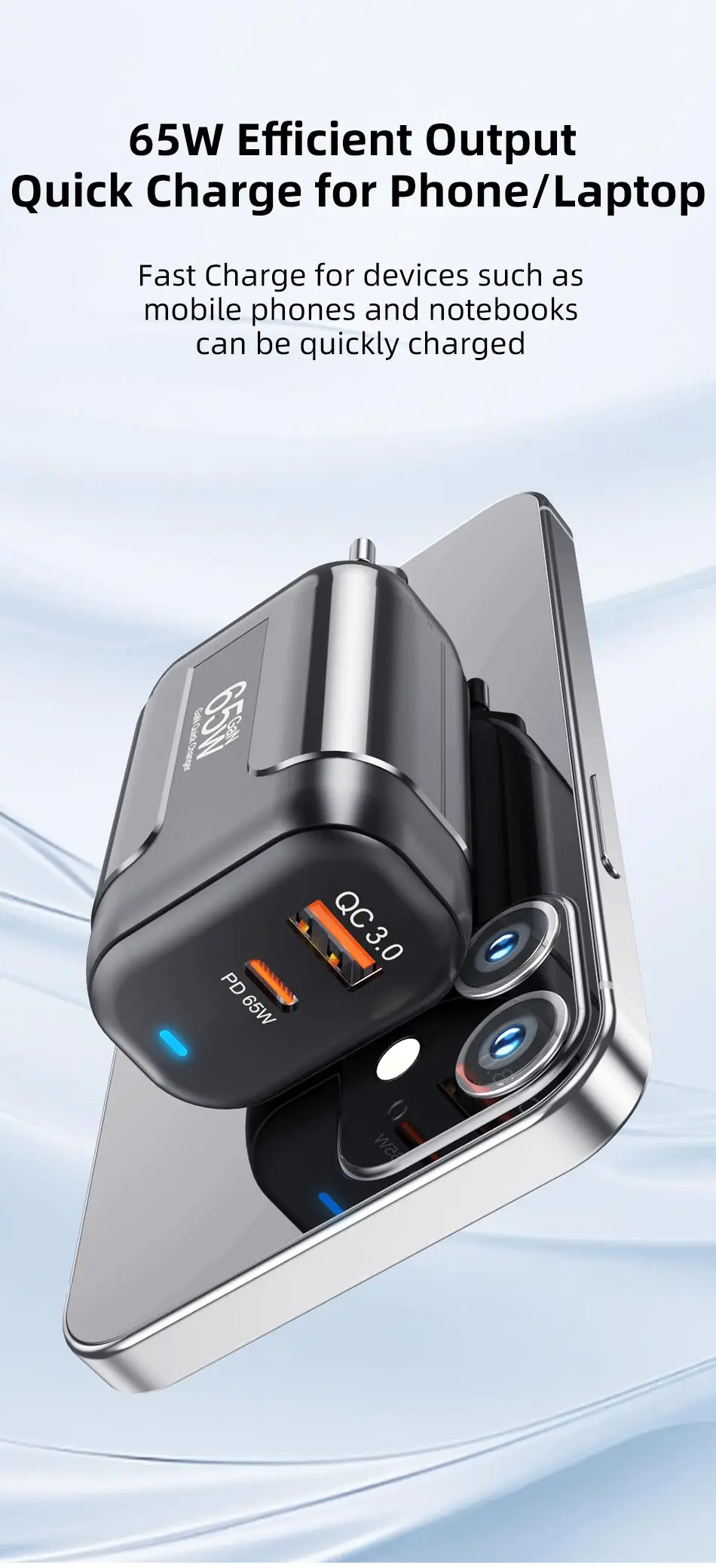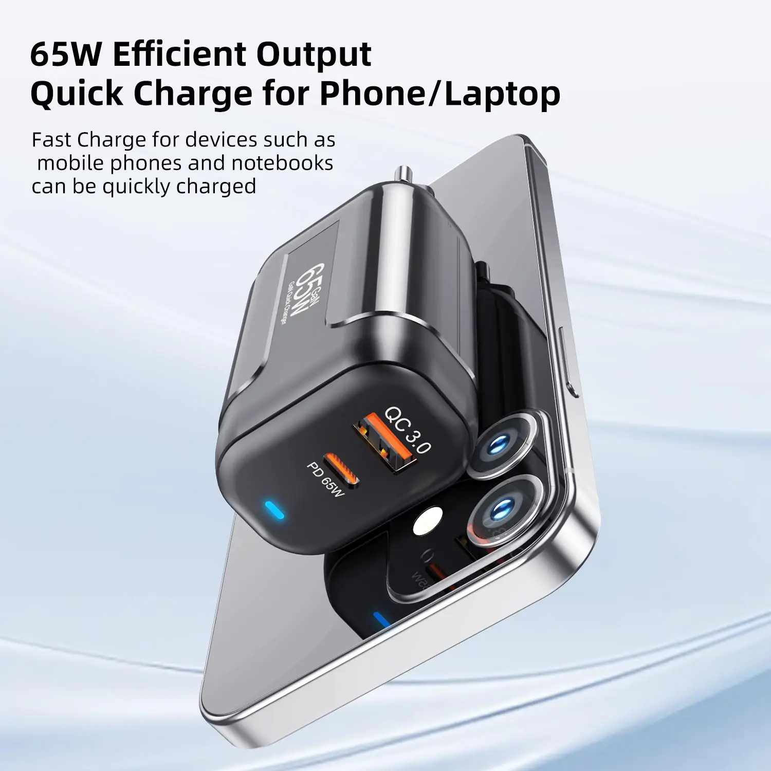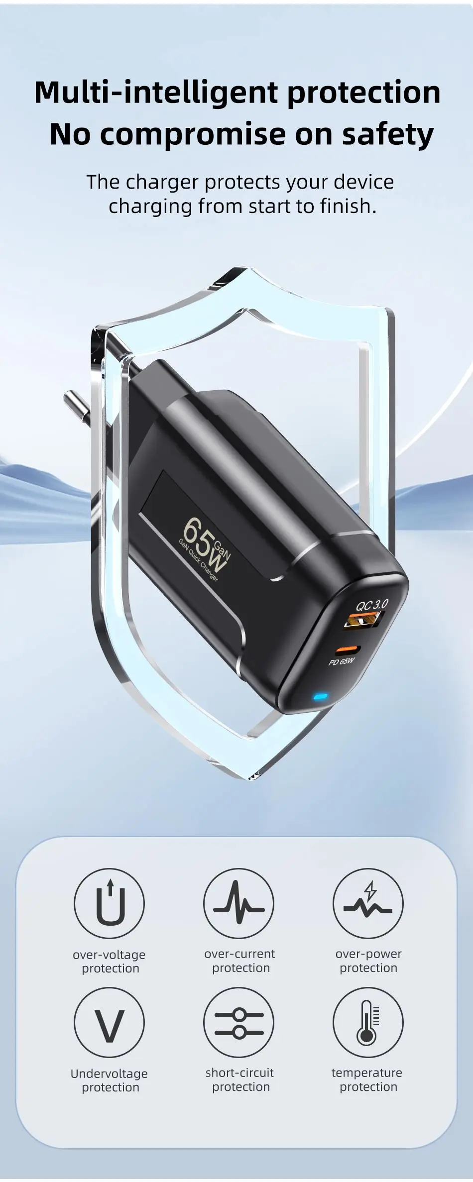 Comprar Cargador GaN USB tipo C de carga rápida, 65W, PD, QC3.0, KR, enchufe de la UE y EE. UU., para Xiaomi 14, 13, iPhone 15 Pro Max, Samsung S23, Oneplus, Redmi POCO