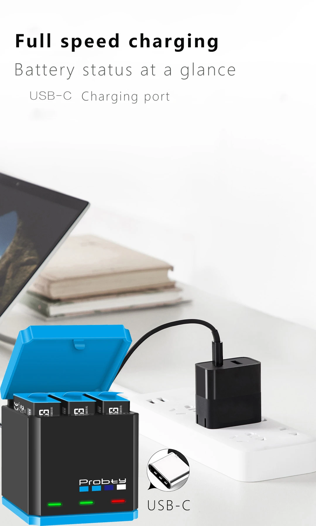 3. Diseño multifuncional: puedes usarlo como cargador para cargar 3 baterías GoPro Hero9 al mismo tiempo y como