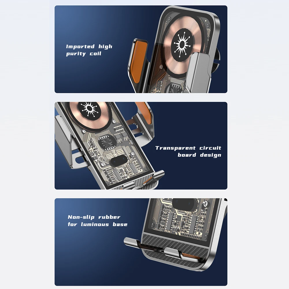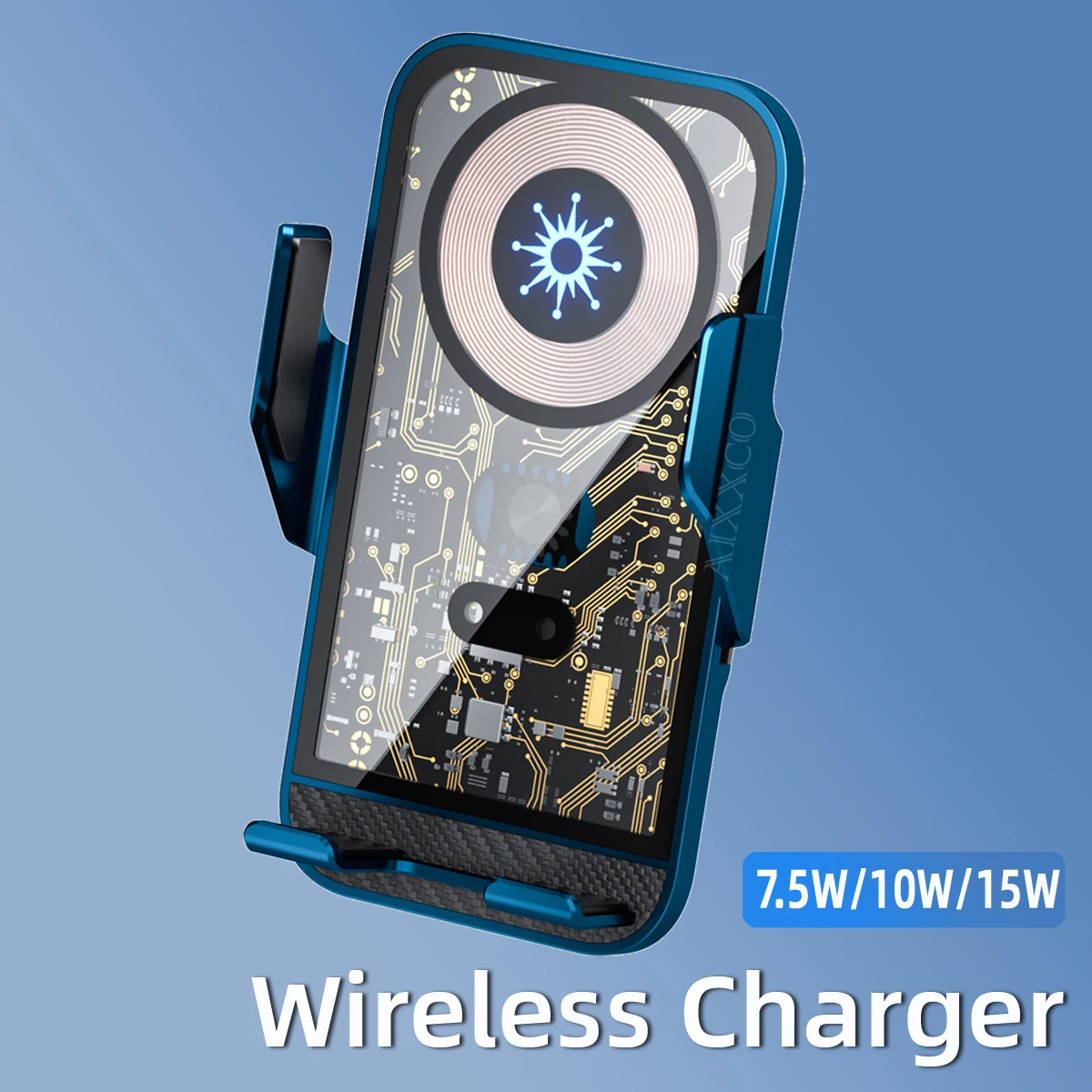 Comprar Cargador inalámbrico de 15W para coche, soporte de teléfono para iPhone 14, 13, 12, Samsung, Xiaomi, carga rápida por inducción infrarroja