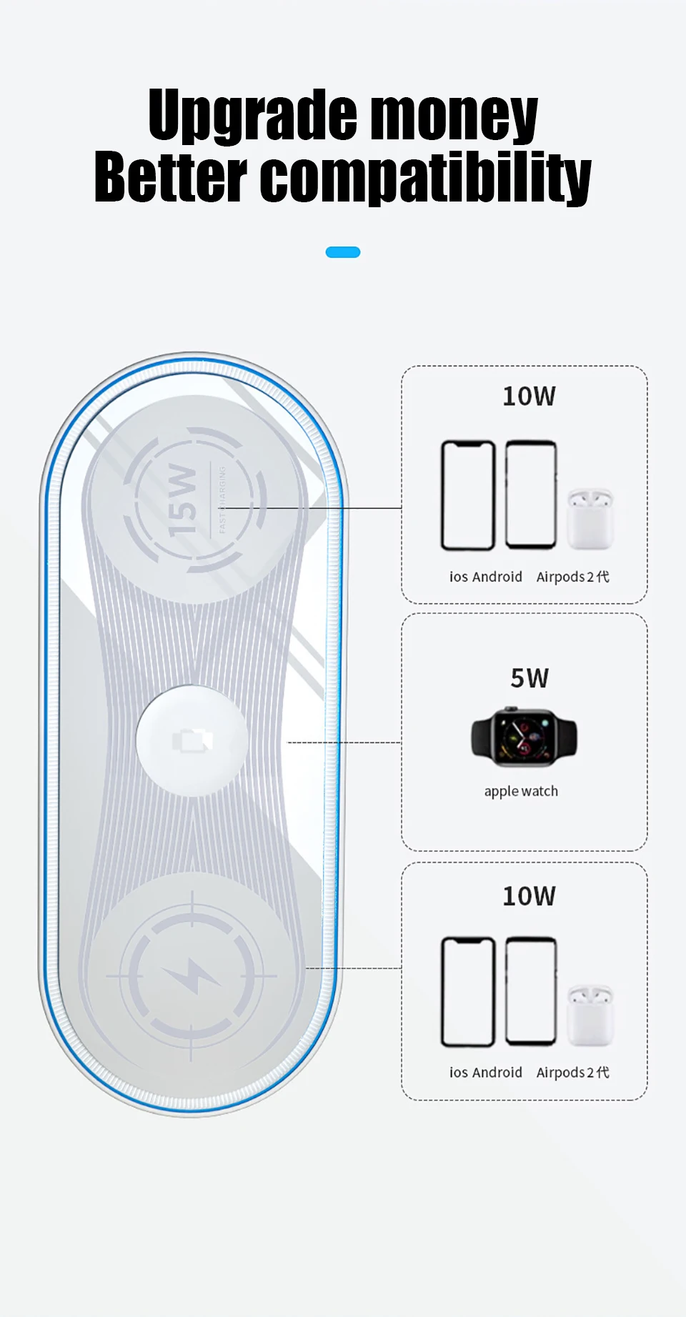 Los teléfonos móviles, relojes y Airpods se pueden cargar simultáneamente, distancia de inducción de 8mm