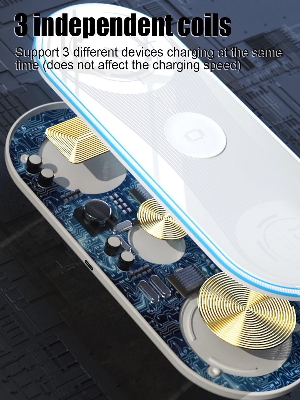 Tres bobinas independientes están integradas y tres dispositivos se cargan simultáneamente