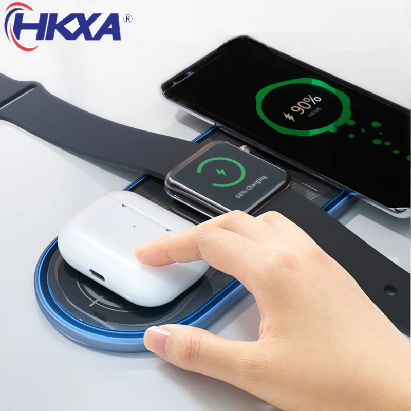 Comprar Cargador inalámbrico 3 en 1 para iPhone 14, 12 Pro, X, XS, XR, 8, 8Plus, Apple Watch 5, 4, 3, 2, Airpods 2 Pro, Buds Plus